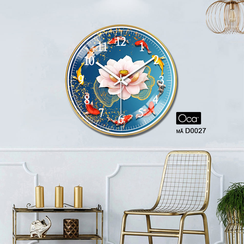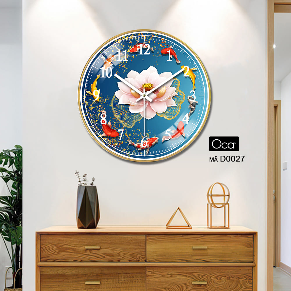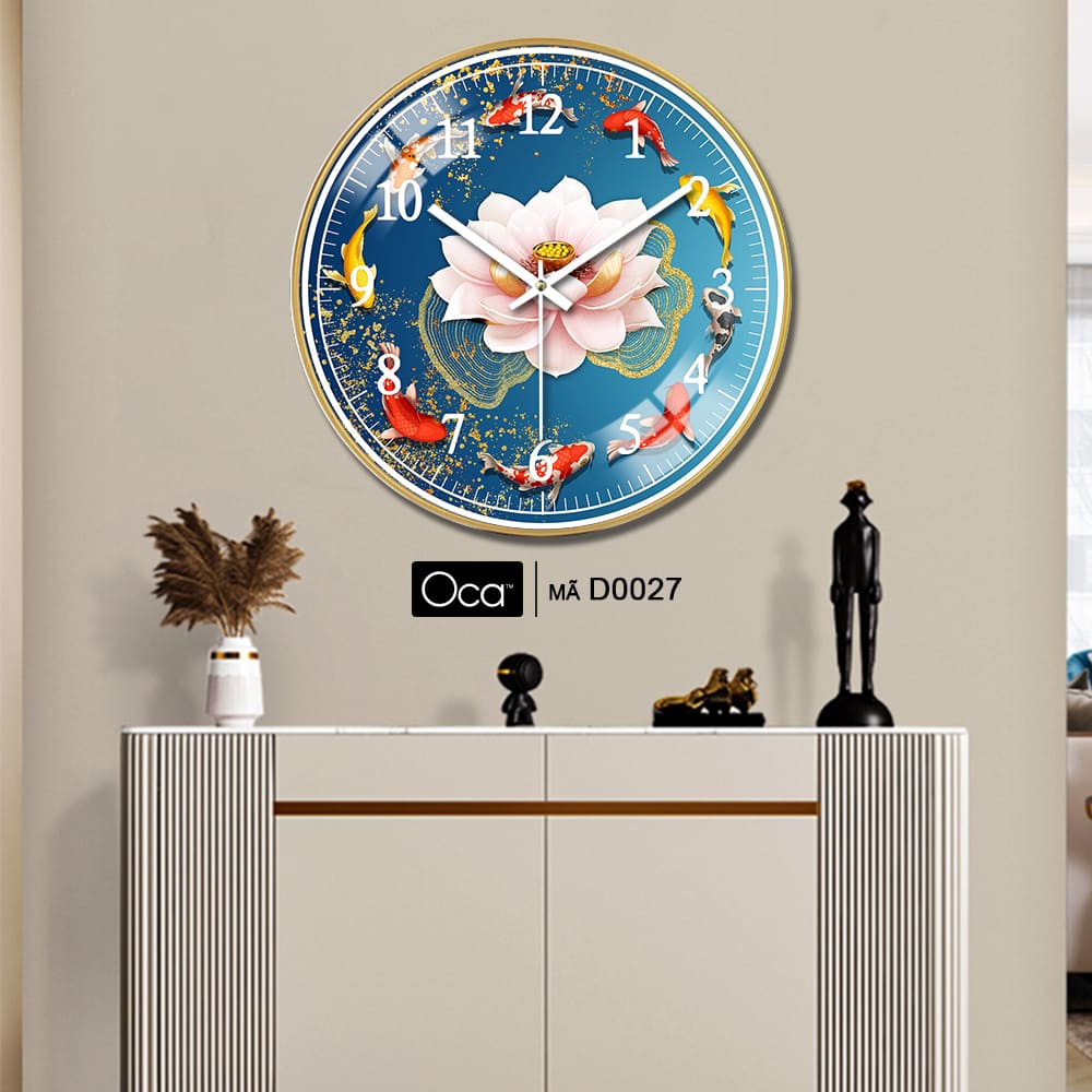 Đồng Hồ Cửu Ngư Quần Hội là một tuyệt tác phong thủy mang ý nghĩa thịnh vượng, viên mãn và thành công trong cuộc sống. Hình ảnh chín chú cá chép bơi quanh biểu tượng hoa sen – loài hoa của sự thanh khiết và giác ngộ – tượng trưng cho cuộc sống sung túc, hòa hợp và bền vững. Đây là mẫu đồng hồ decor được nhiều gia chủ yêu thích vì vừa đẹp mắt, vừa chứa đựng ý nghĩa phong thủy sâu sắc.