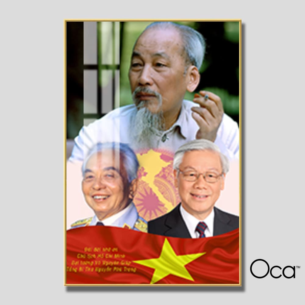 Tấm tranh Bác Hồ – Bác Giáp – Bác Trọng | Khung hợp kim cao cấp | Mã T0467 | Oca
