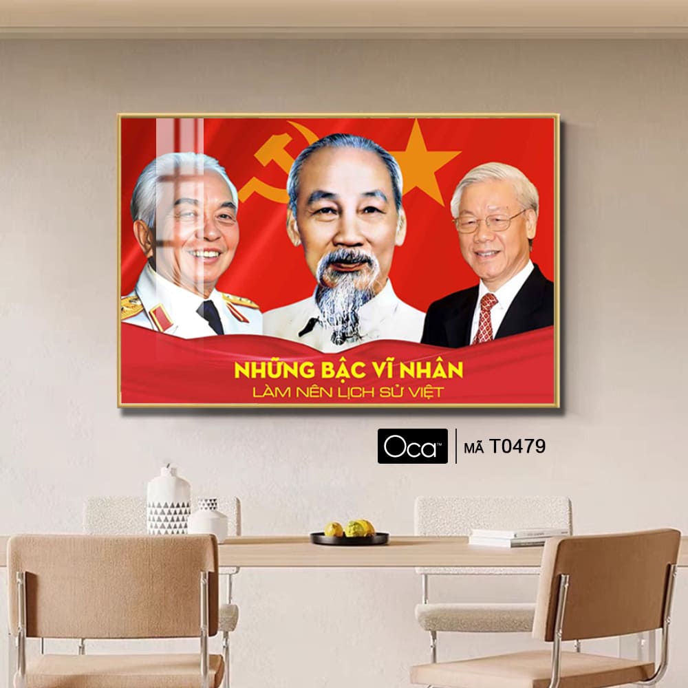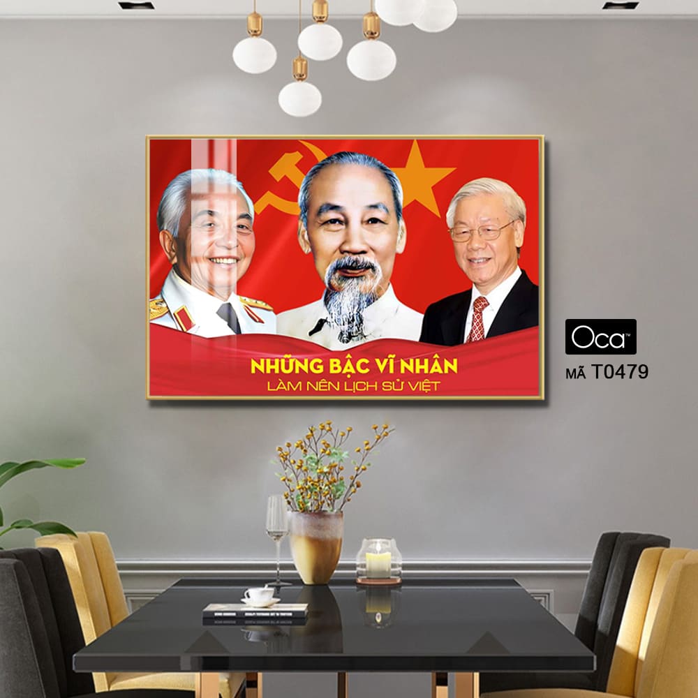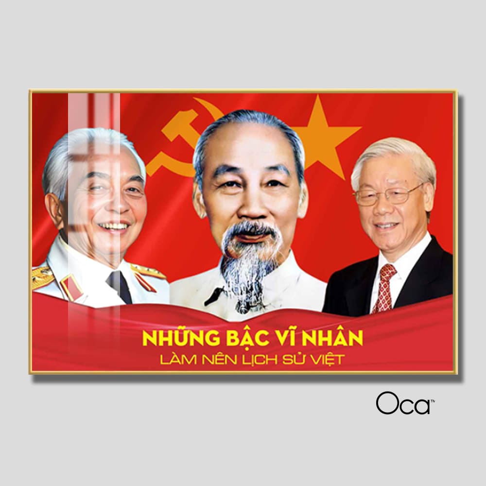 Tấm tranh Bác Hồ – Bác Giáp – Bác Trọng | Khung hợp kim cao cấp | Mã T0479 | Oca