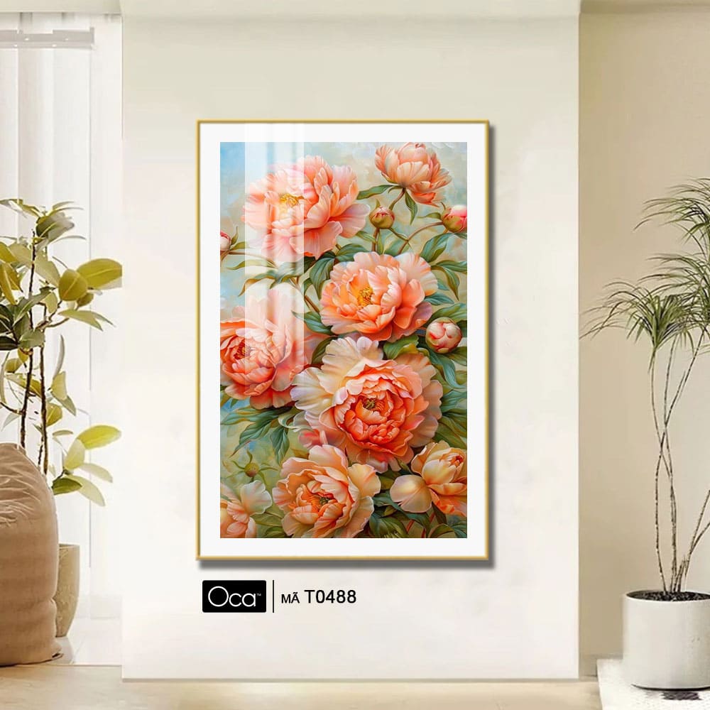 Với nét vẽ mềm mại, bố cục hài hòa và gam màu tinh tế, bức tranh mang phong cách vừa hiện đại vừa cổ điển, phù hợp với nhiều không gian nội thất khác nhau. Mỗi chi tiết đều được thể hiện bằng sự tỉ mỉ và cảm xúc nghệ thuật sâu sắc, khiến người ngắm không chỉ nhìn thấy hoa, mà còn cảm nhận được hơi thở của thiên nhiên và vẻ đẹp thuần khiết trong từng cánh thược dược. Đây là một tác phẩm vừa trang trí, vừa truyền tải năng lượng tích cực và thông điệp về hạnh phúc trọn vẹn.”