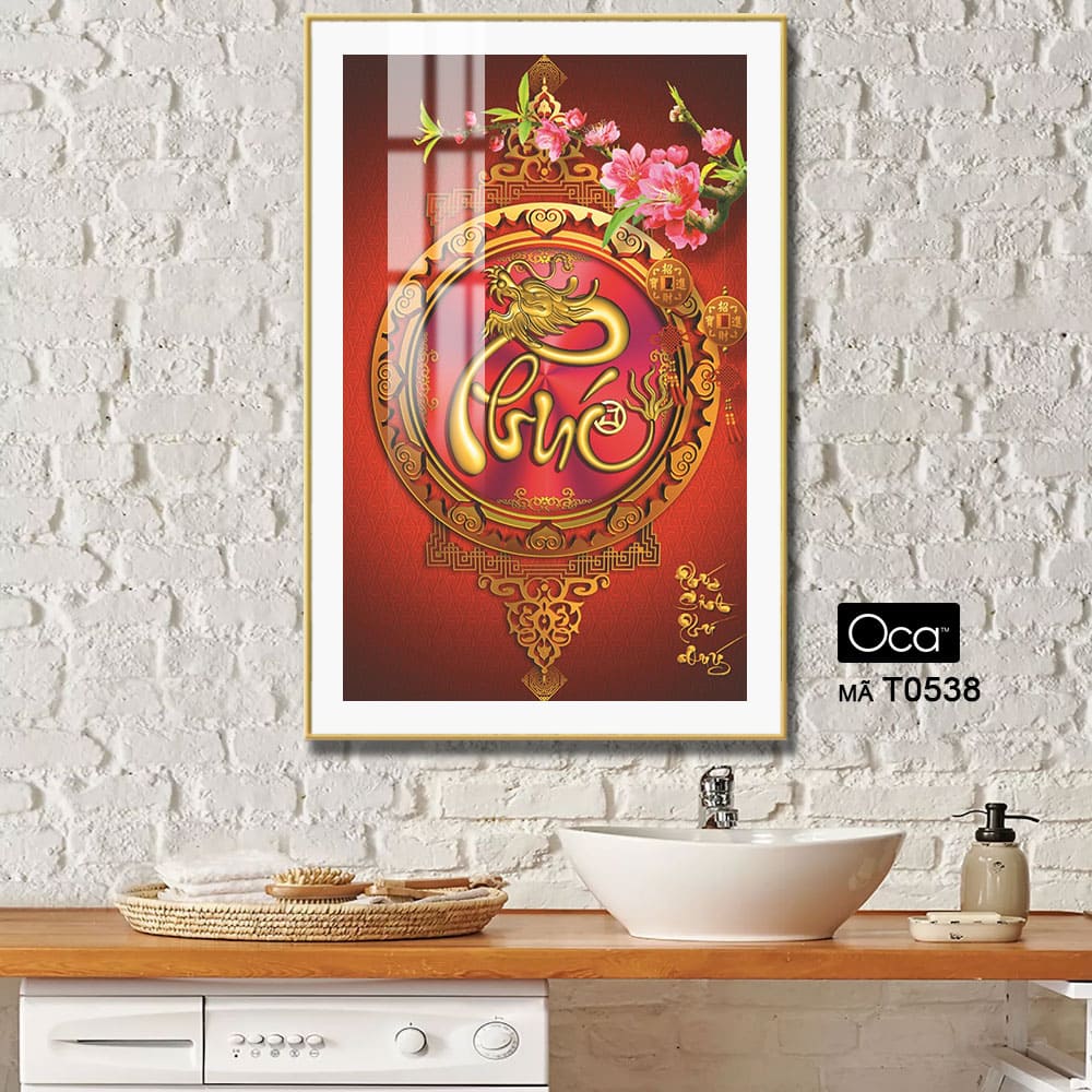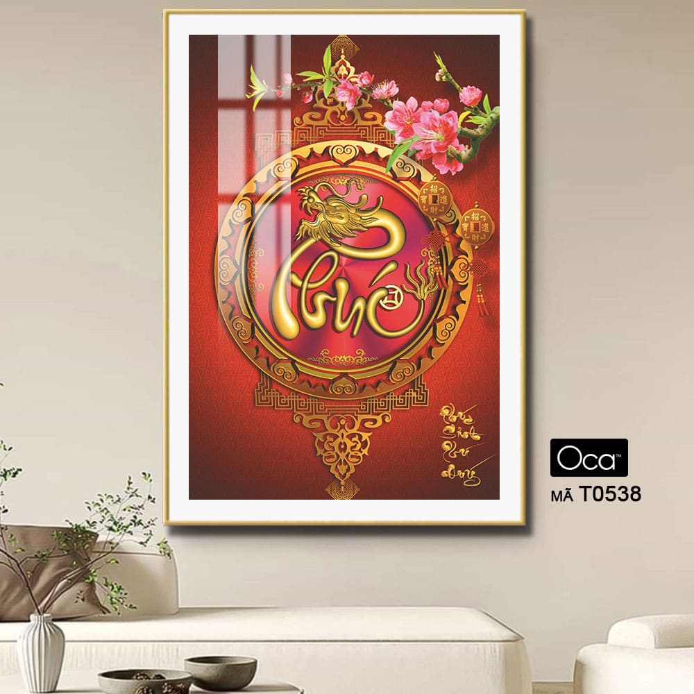 “Bức tranh “Chữ PHÚC sinh Phú Quý” là một tác phẩm nghệ thuật mang đậm văn hóa truyền thống và ý nghĩa phong thủy sâu sắc, biểu trưng cho may mắn, thịnh vượng và hạnh phúc trọn vẹn. Trung tâm bức tranh là chữ “Phúc” được cách điệu tinh xảo, uốn lượn mềm mại nhưng mạnh mẽ, được trang trí bằng hoa văn, lá cành, hoặc hình ảnh vương giả như mẫu đơn, chim công, cá chép, tạo nên một tổng thể hài hòa, sang trọng và tràn đầy năng lượng tích cực.
