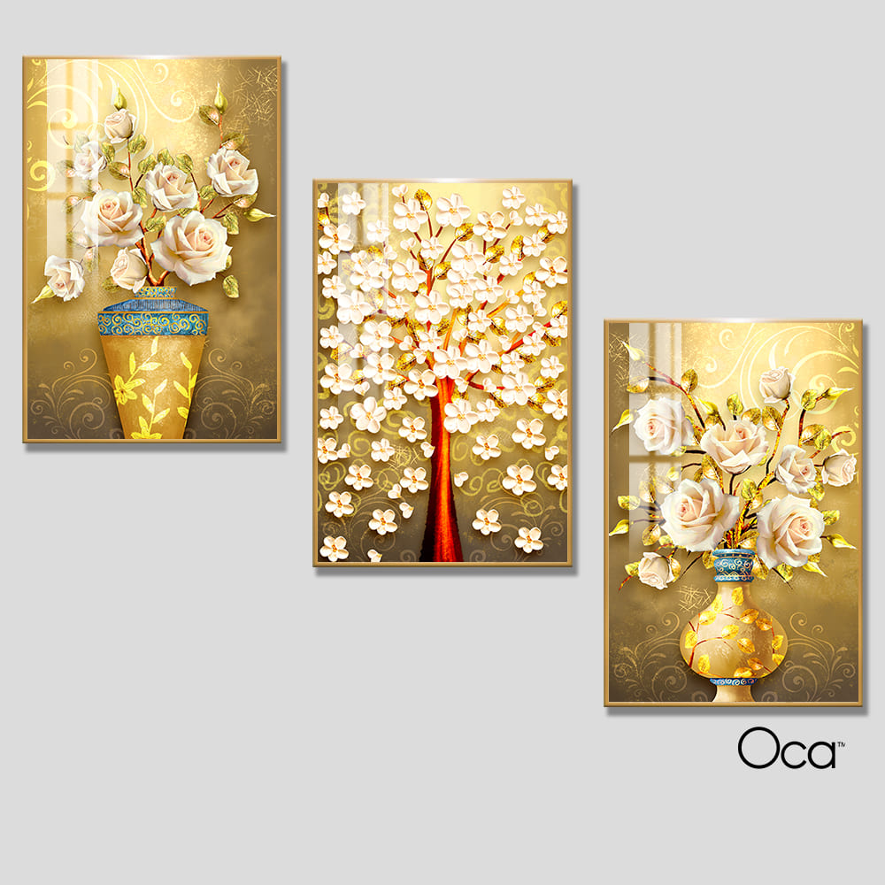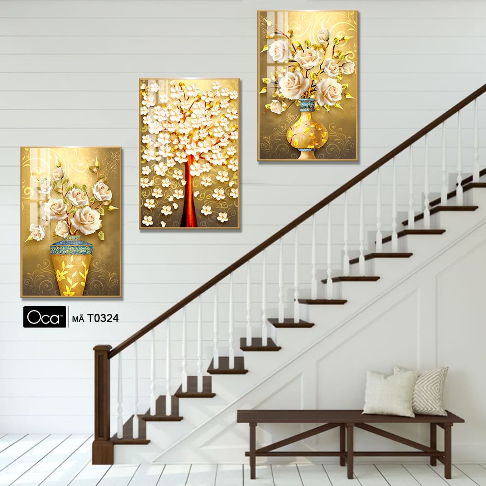 Bộ tranh mai phú quý | Bộ 3 tranh treo cầu thang | Mã T0324 | Oca