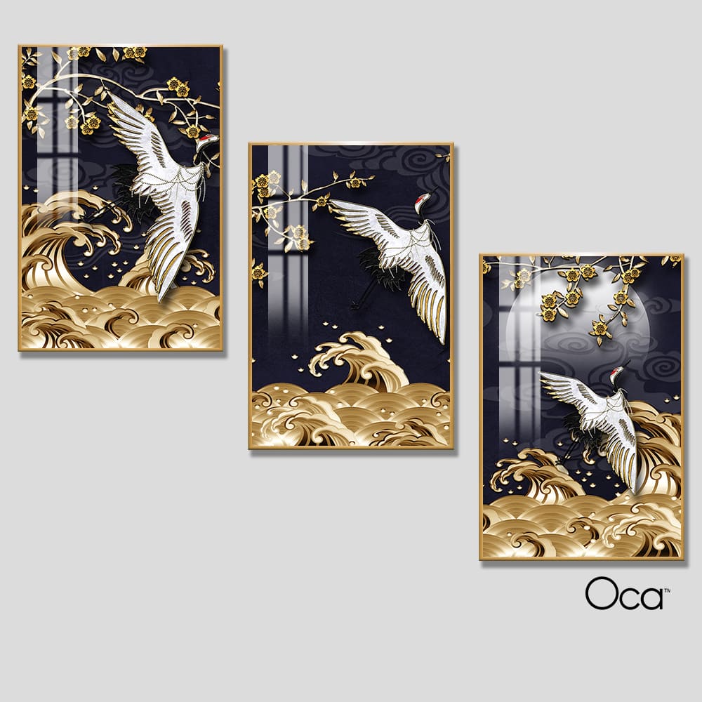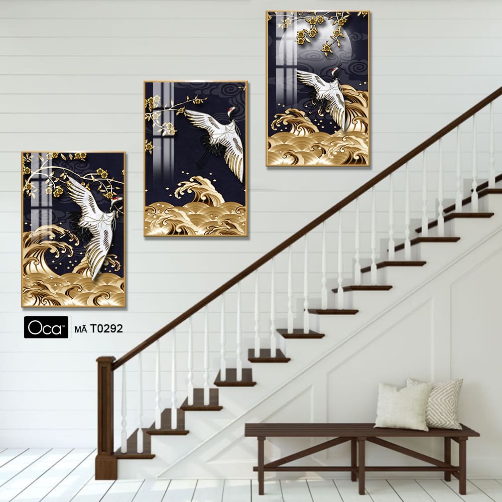 Chim hạc cất cánh | Bộ 3 tranh treo cầu thang | Mã T0292 | Oca