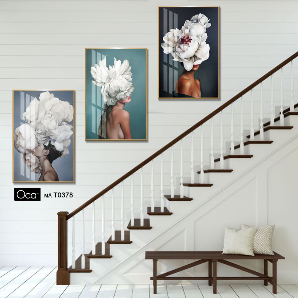 Cô gái nghệ thuật | Bộ 3 tranh treo cầu thang | Mã T0378 | Oca