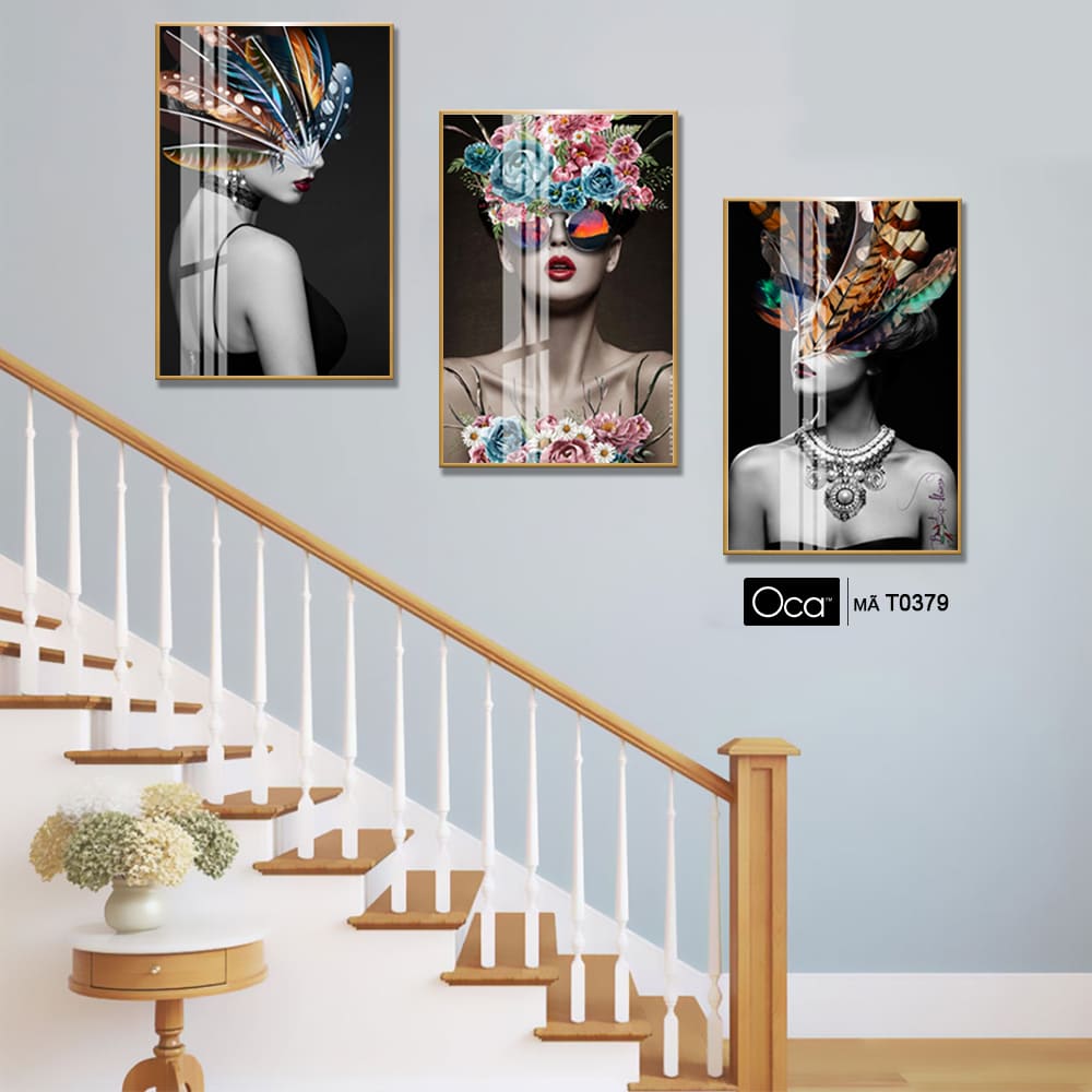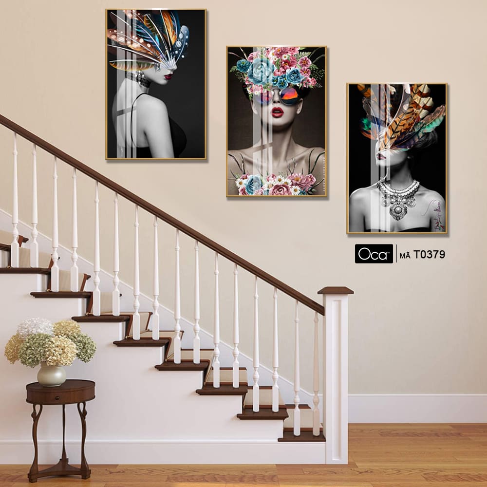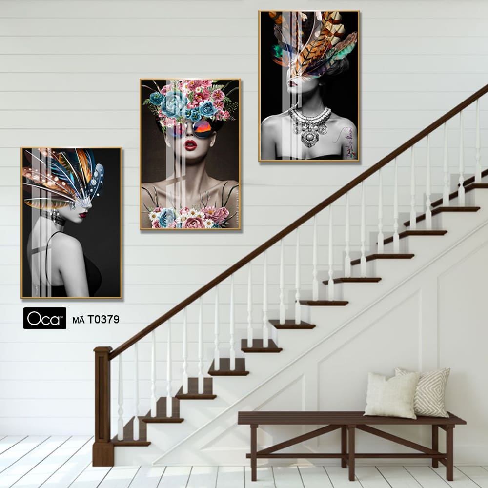 Cô gái nghệ thuật | Bộ 3 tranh treo cầu thang | Mã T0379 | Oca