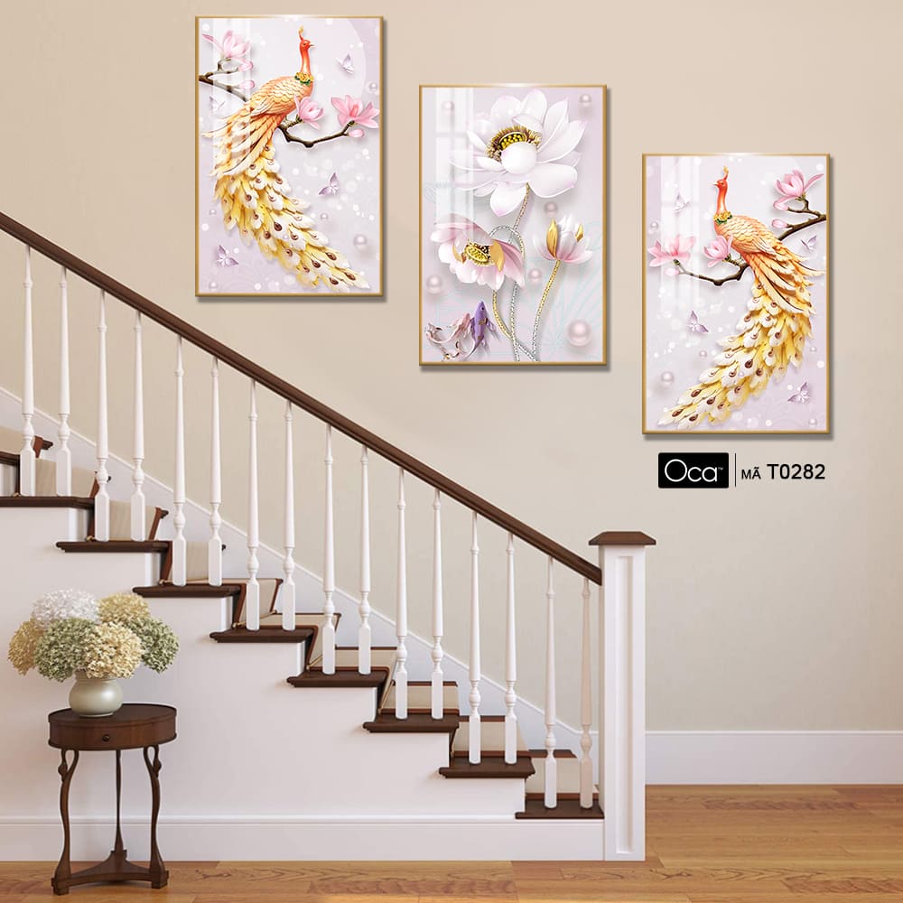 Đôi công uyên ương | Bộ 3 tranh treo cầu thang | Mã T0282 | Oca