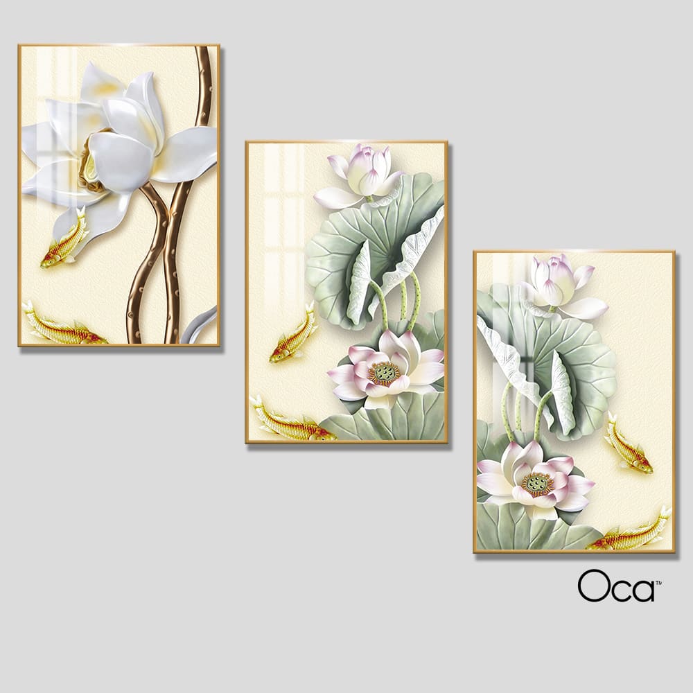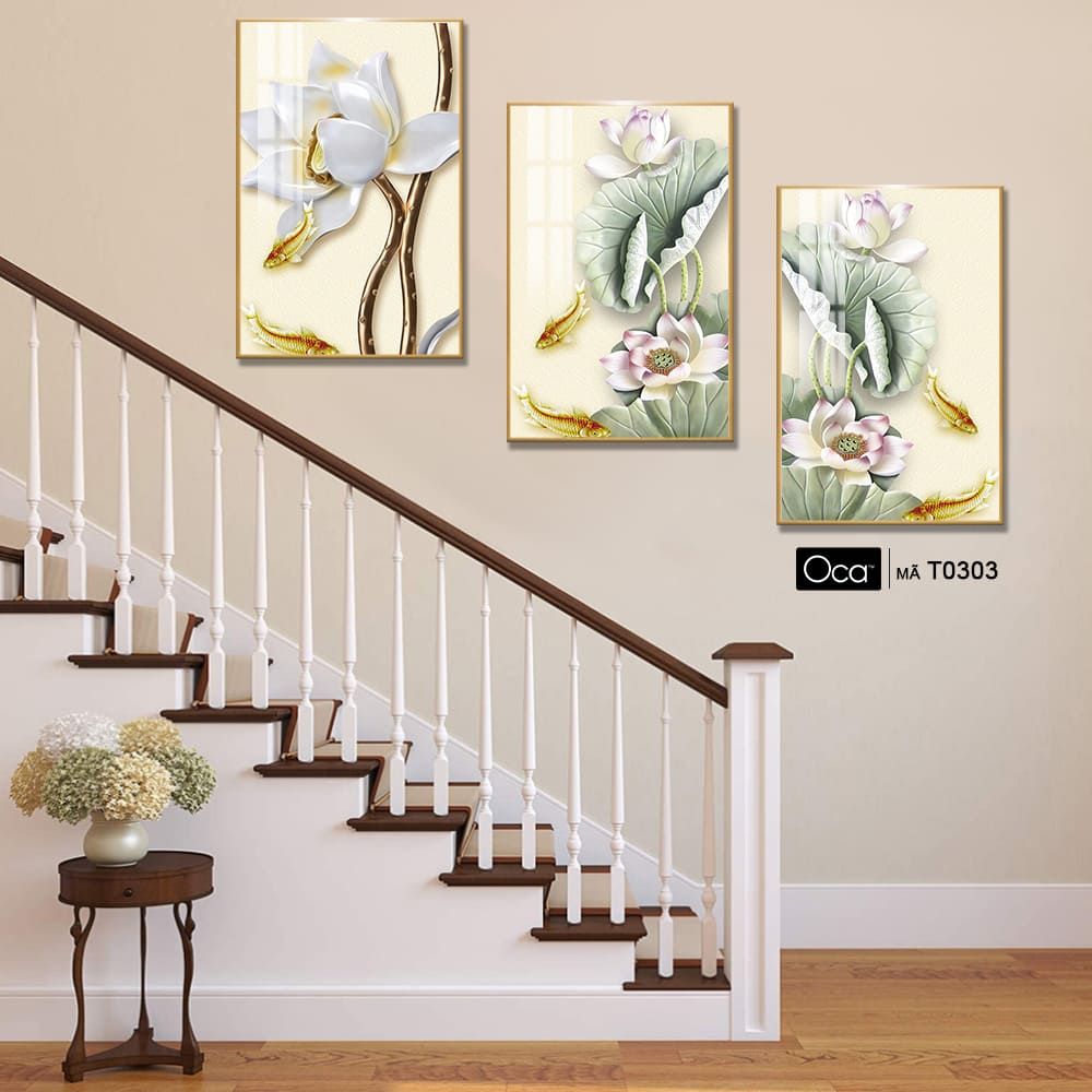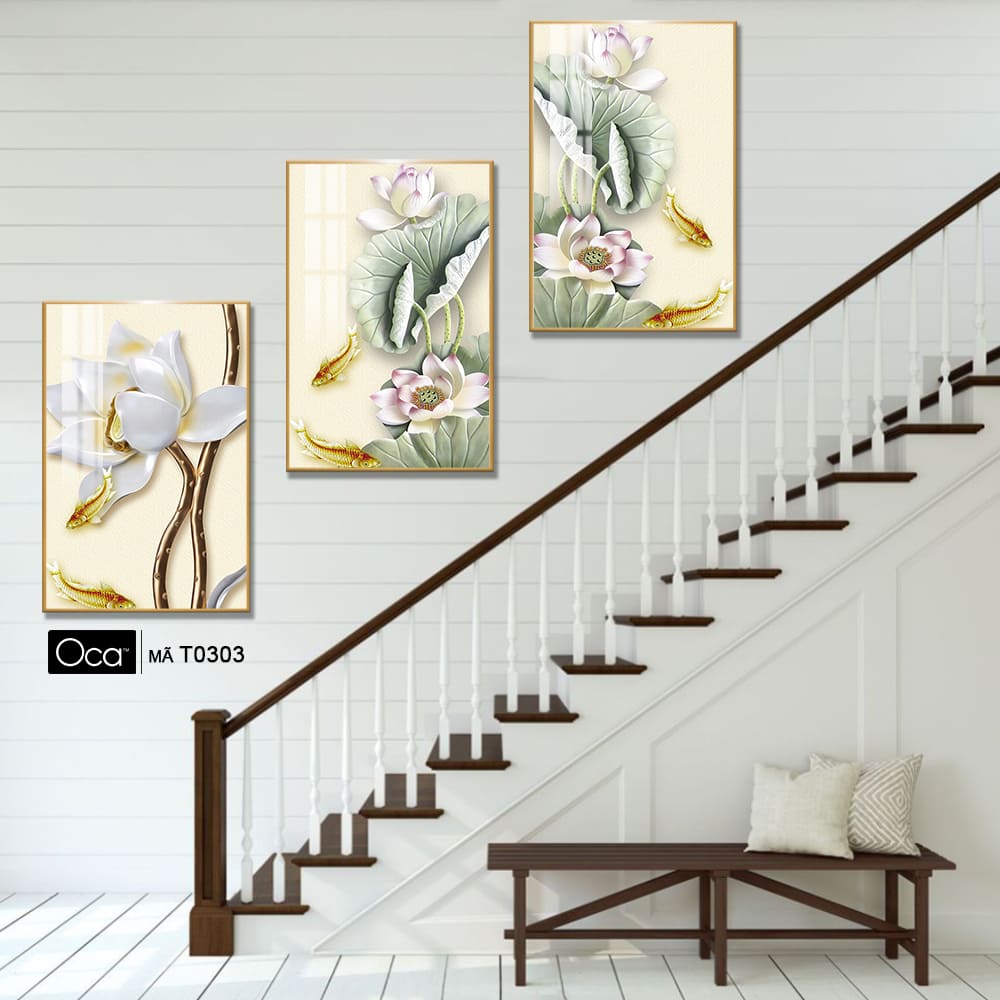Hoa sen trong đầm | Bộ 3 tranh treo cầu thang | Mã T0303 | Oca