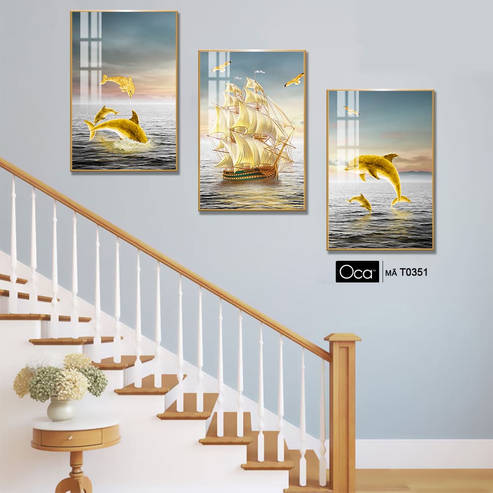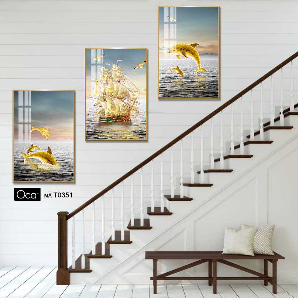 Hoàng hôn trên biển | Bộ 3 tranh treo cầu thang | Mã T0351 | Oca