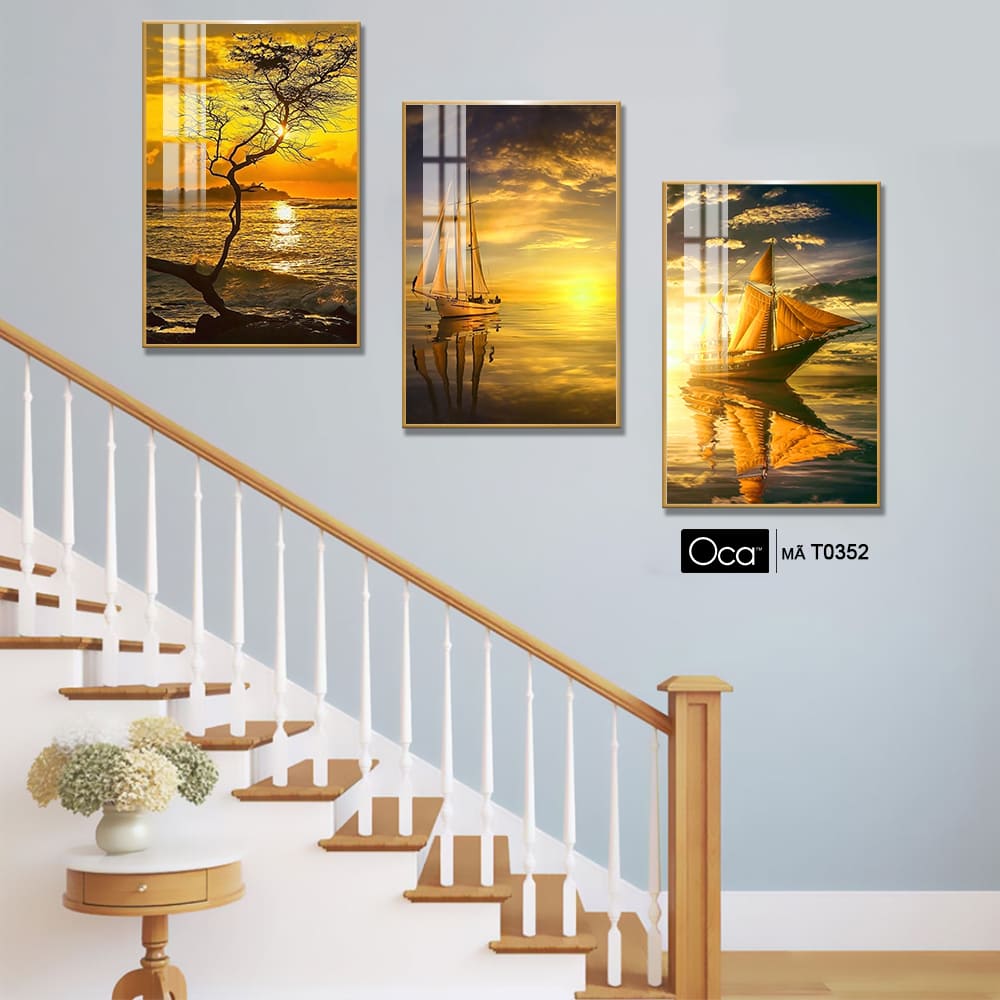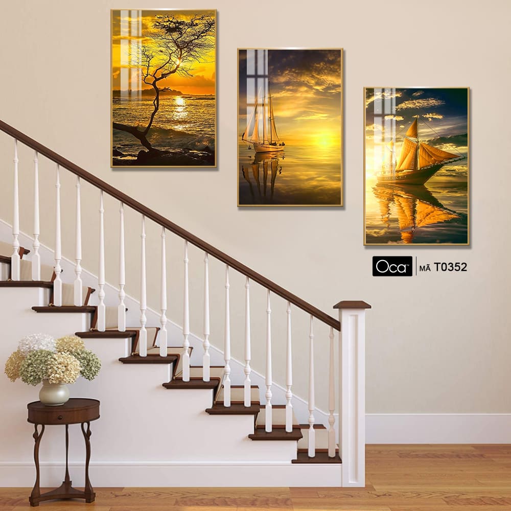 Hoàng hôn trên biển | Bộ 3 tranh treo cầu thang | Mã T0352 | Oca