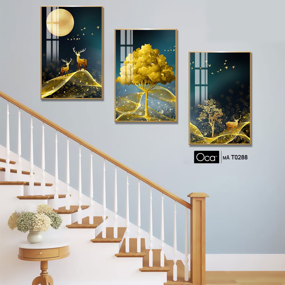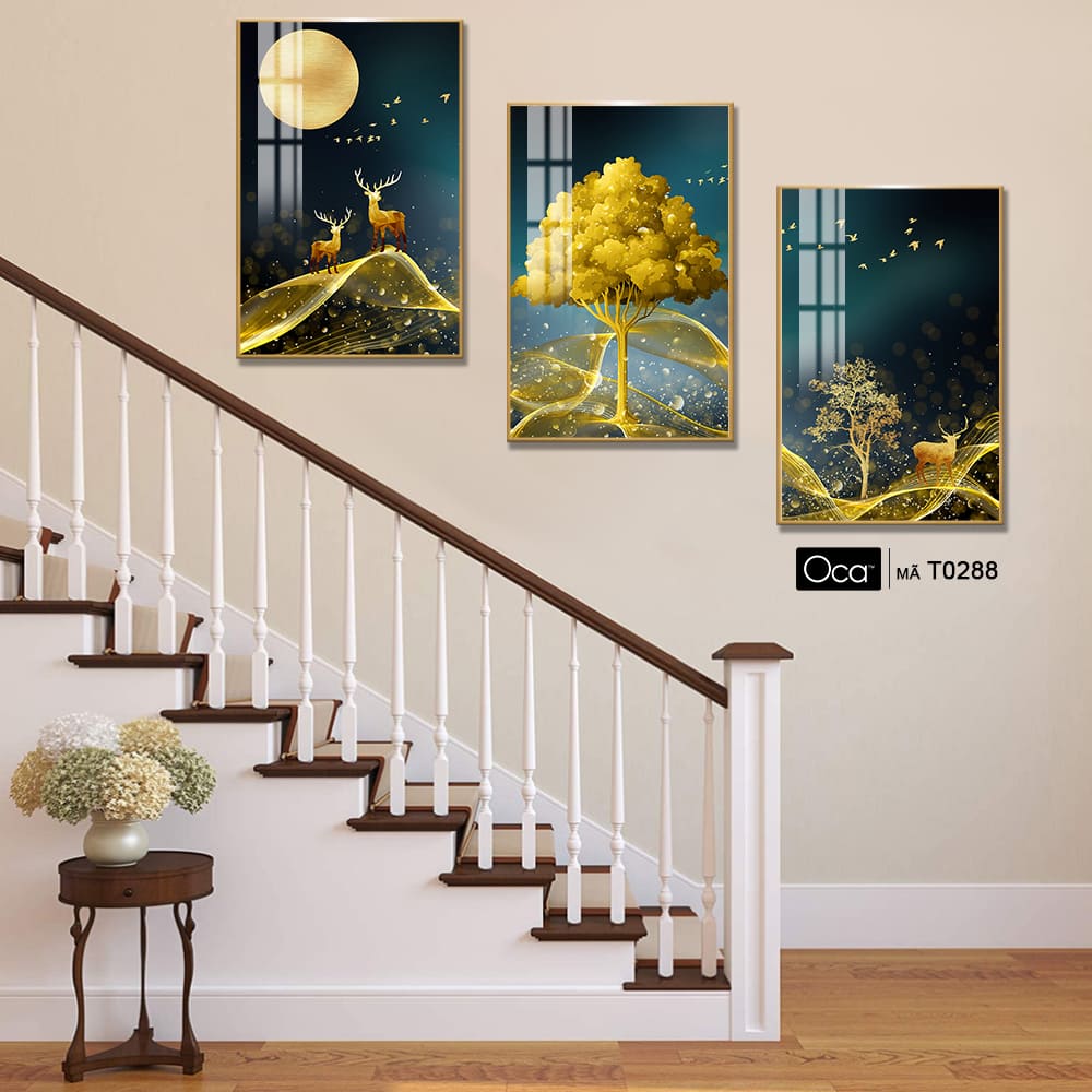 Hươu trong đêm trăng | Bộ 3 tranh treo cầu thang | Mã T0288 | Oca