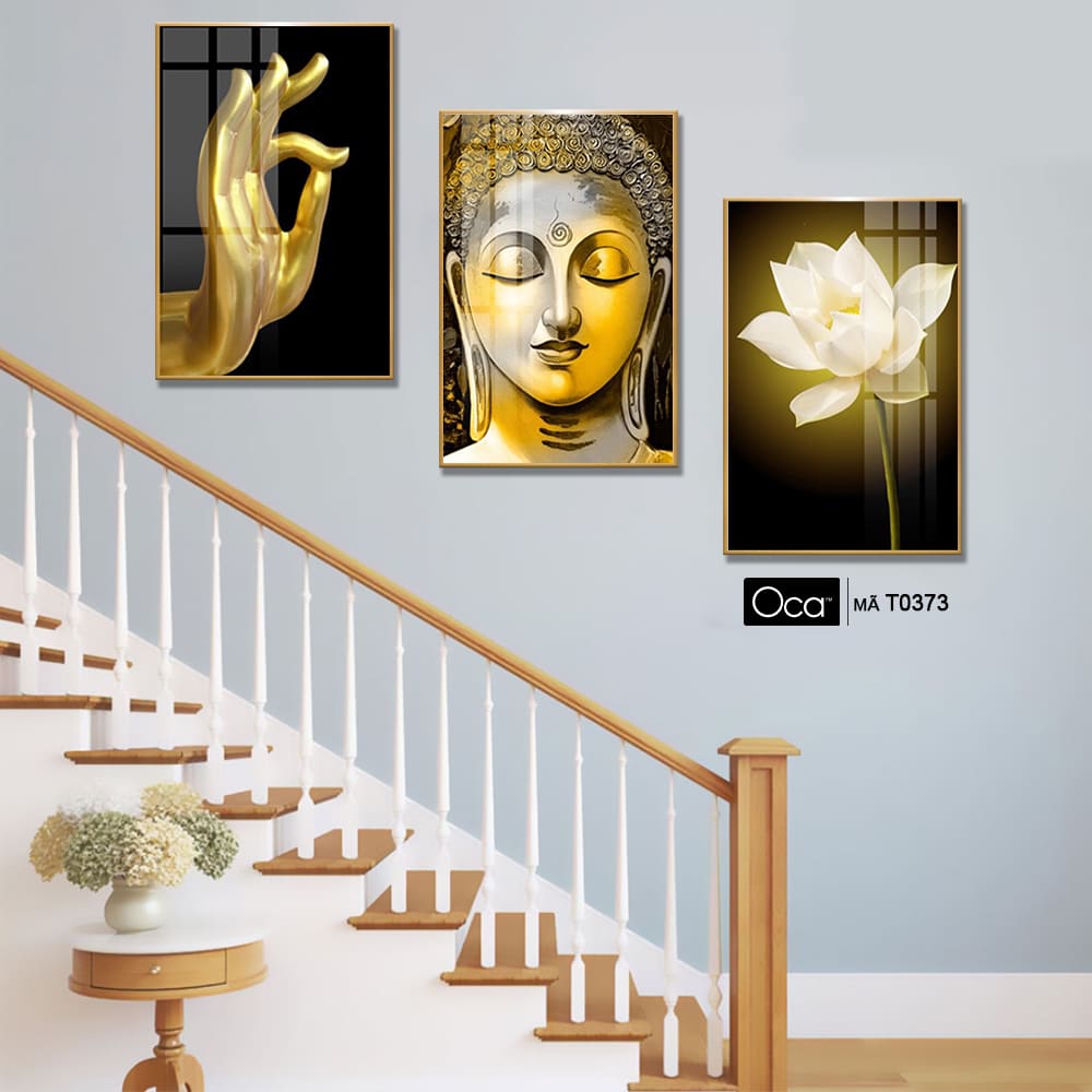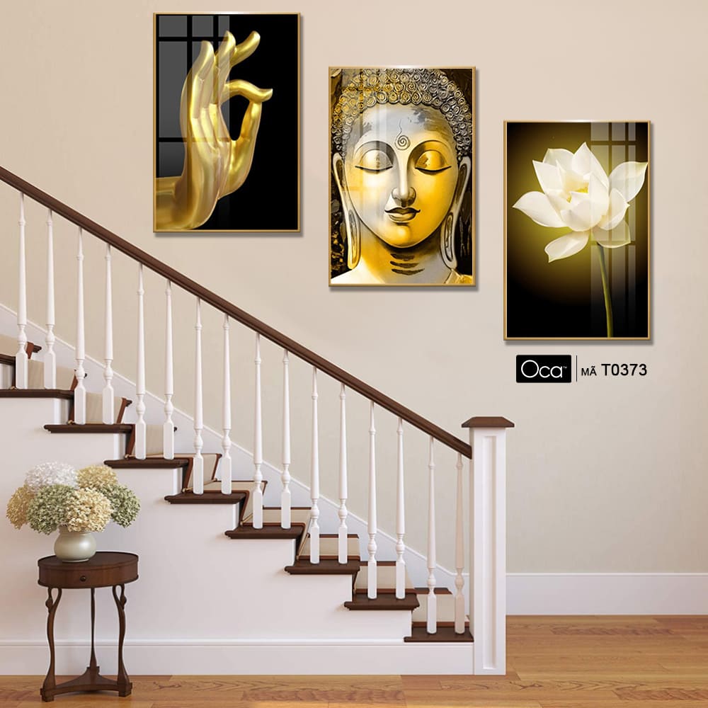 Phật pháp hoa sen | Bộ 3 tranh treo cầu thang | Mã T0373 | Oca