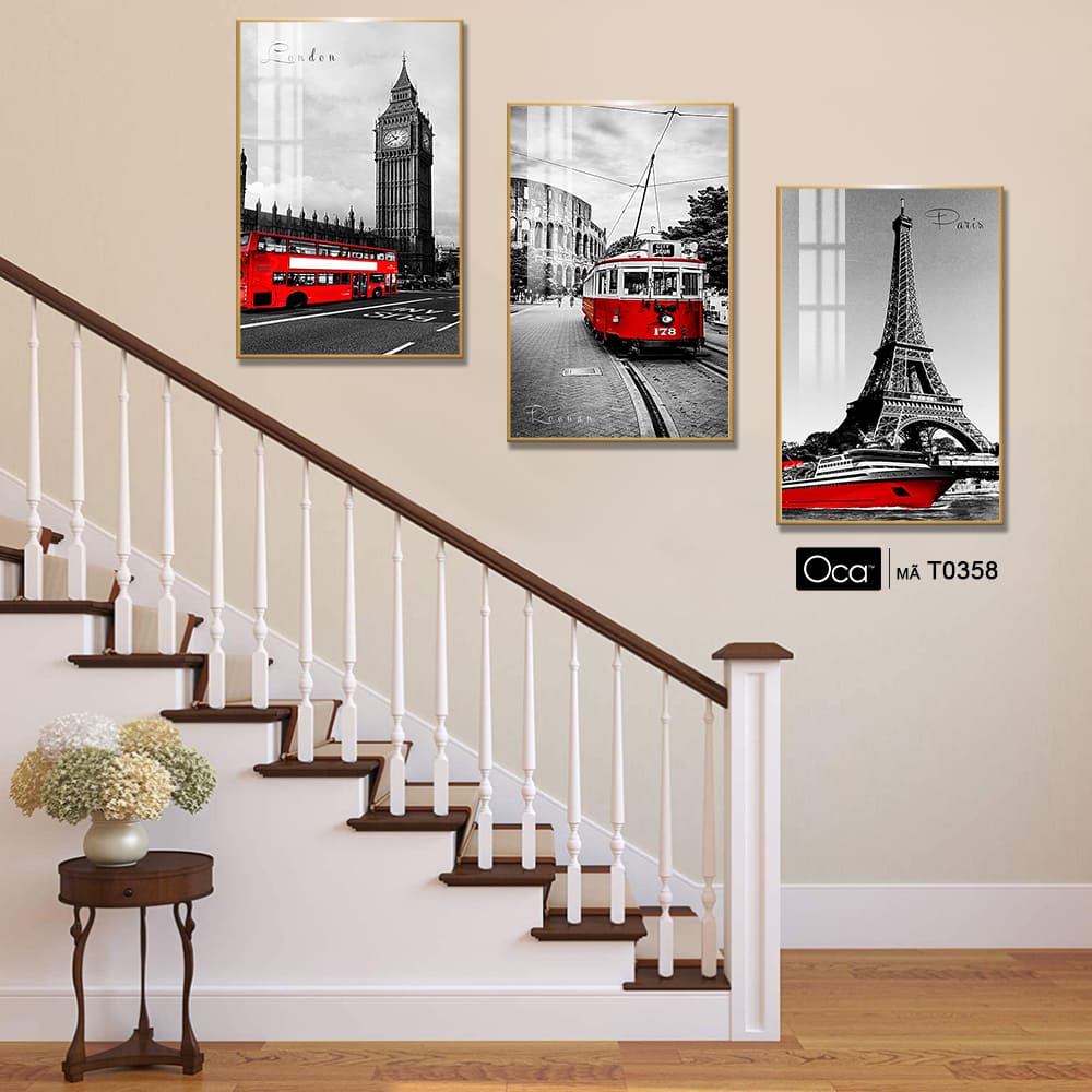 Tháp Eiffel | Bộ 3 tranh treo cầu thang | Mã T0358 | Oca