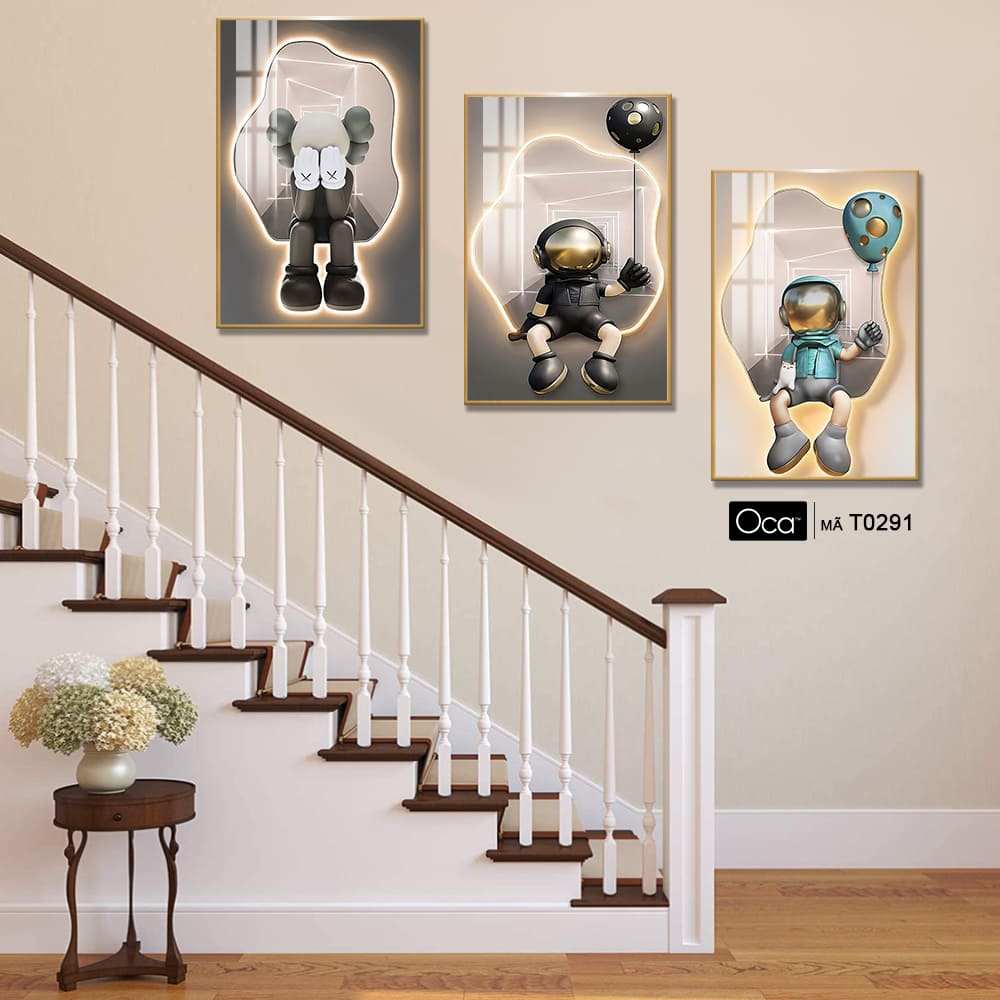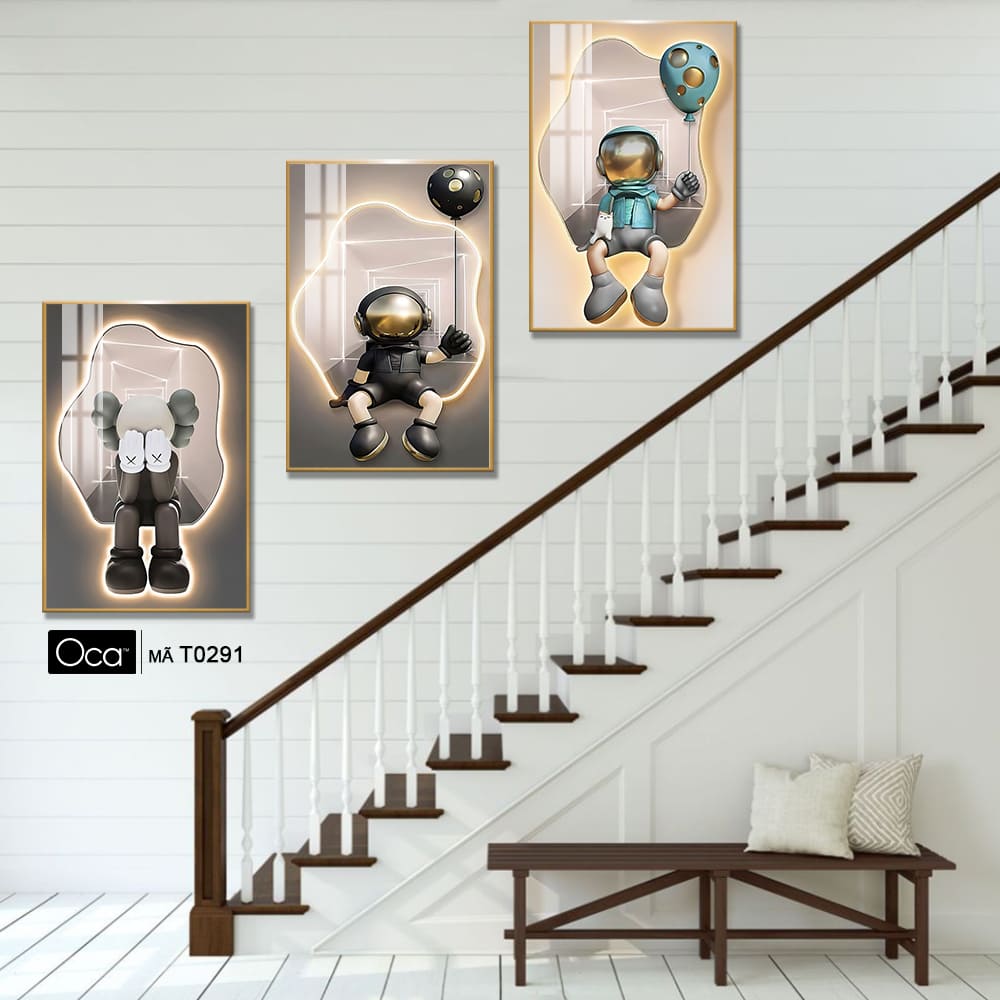 Tranh Bearbrick | Bộ 3 tranh treo cầu thang | Mã T0291 | Oca