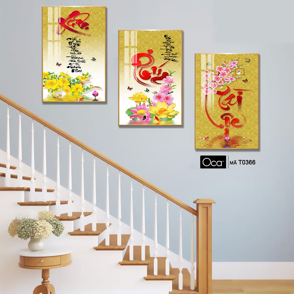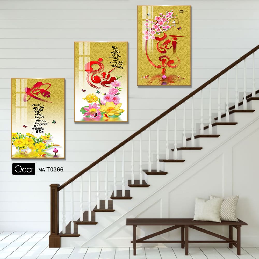 Xuân Phúc Tài Lộc | Bộ 3 tranh treo cầu thang | Mã T0366 | Oca