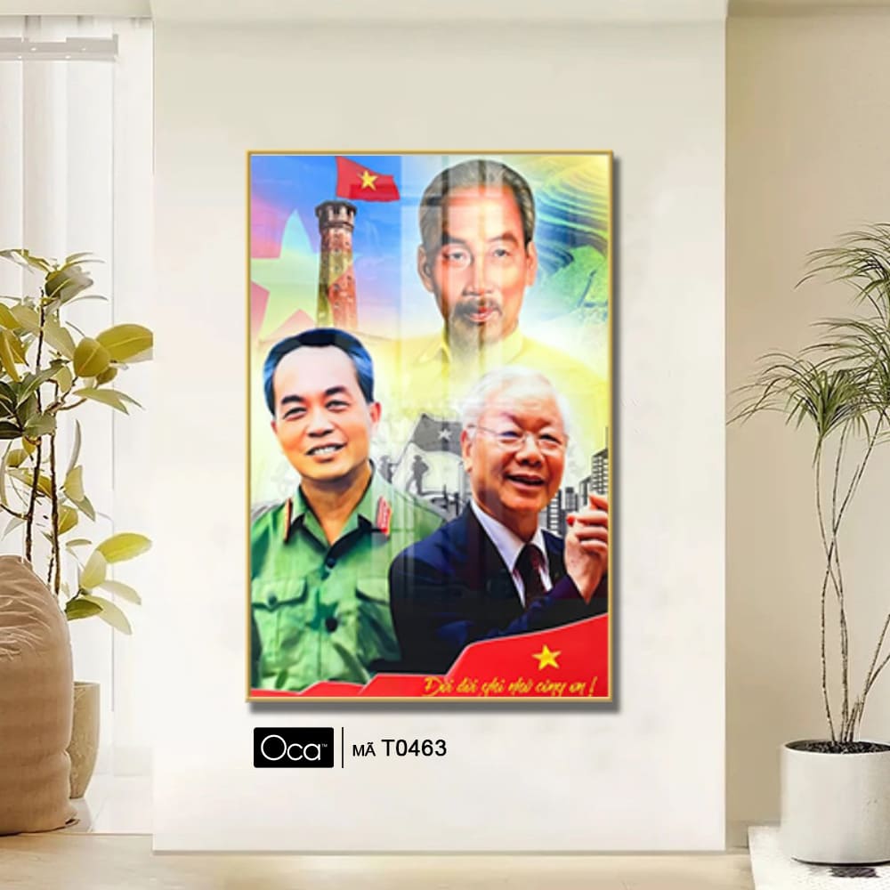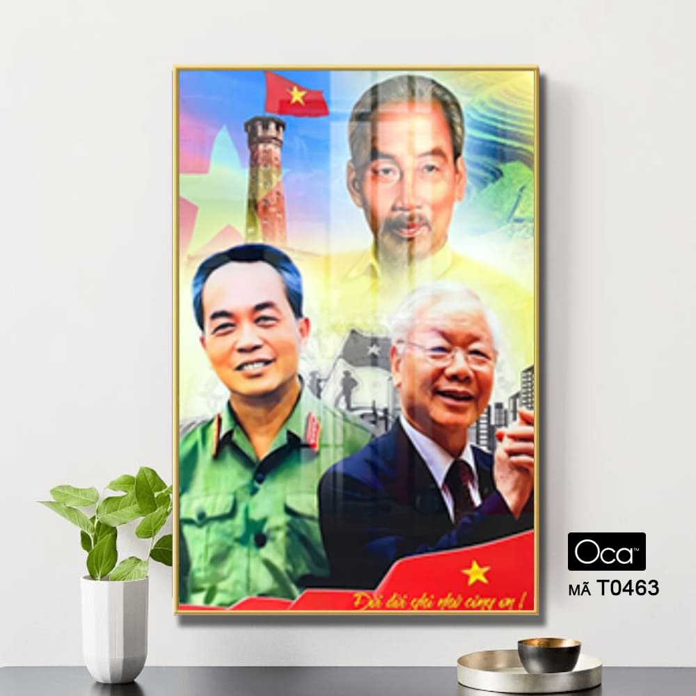 Tấm tranh Bác Hồ – Bác Giáp – Bác Trọng | Khung hợp kim cao cấp | Mã T0463 | Oca