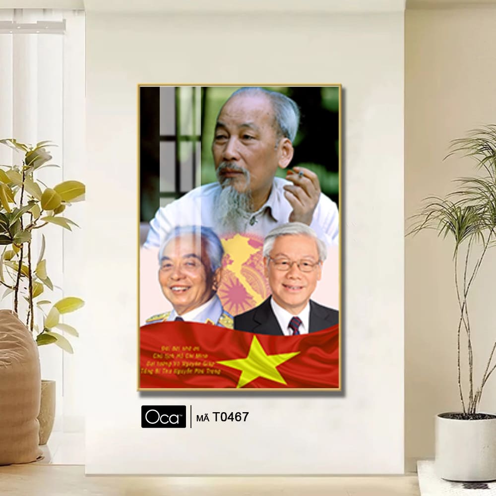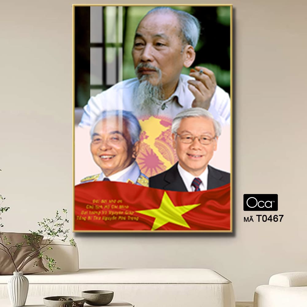 Tấm tranh Bác Hồ – Bác Giáp – Bác Trọng | Khung hợp kim cao cấp | Mã T0467 | Oca