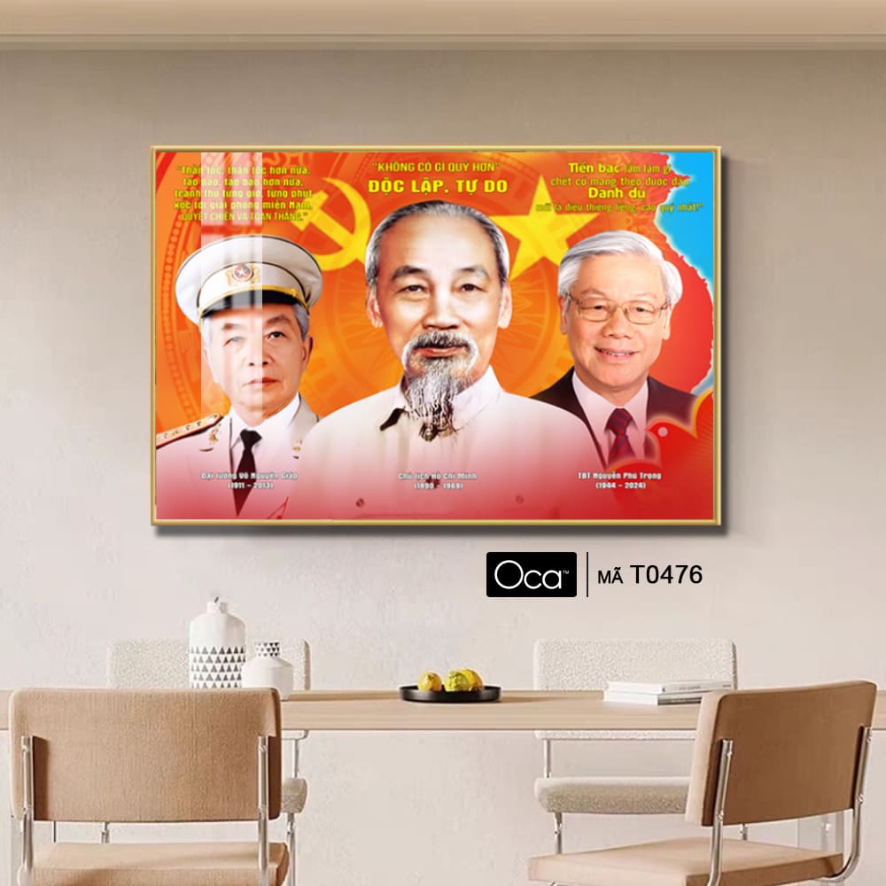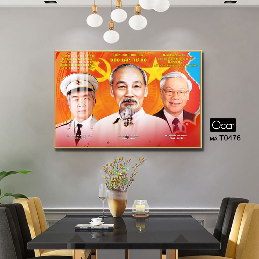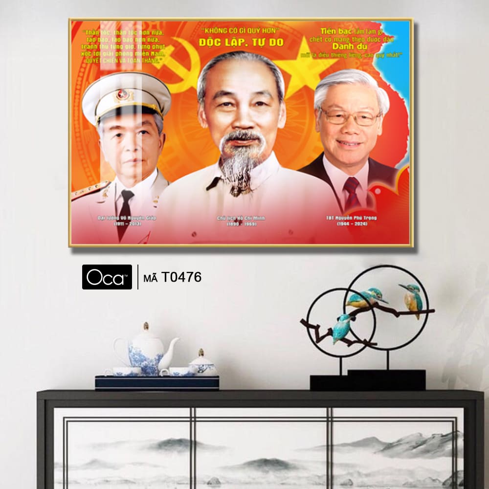 Tấm tranh Bác Hồ – Bác Giáp – Bác Trọng | Khung hợp kim cao cấp | Mã T0476 | Oca
