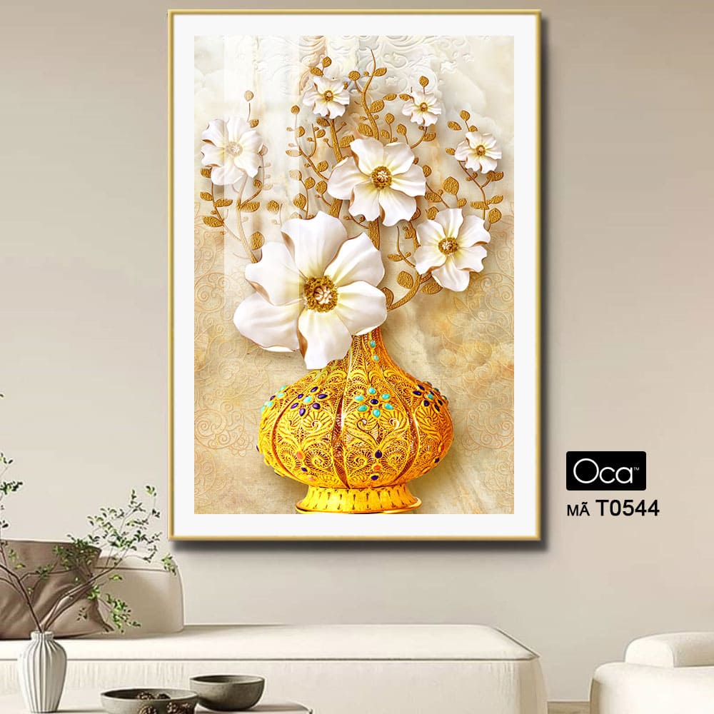 Khi treo bức “Bình hoa Vàng” trong phòng khách, phòng làm việc hoặc không gian sinh hoạt chung, tác phẩm không chỉ làm bừng sáng không gian, tôn lên vẻ đẹp sang trọng và tinh tế, mà còn lan tỏa năng lượng tích cực, mang đến may mắn, tài lộc và cảm giác bình an cho gia chủ. Đây là bức tranh hoàn hảo cho những ai yêu vẻ đẹp rực rỡ, sang trọng và mong muốn không gian sống tràn đầy sức sống và thịnh vượng.”