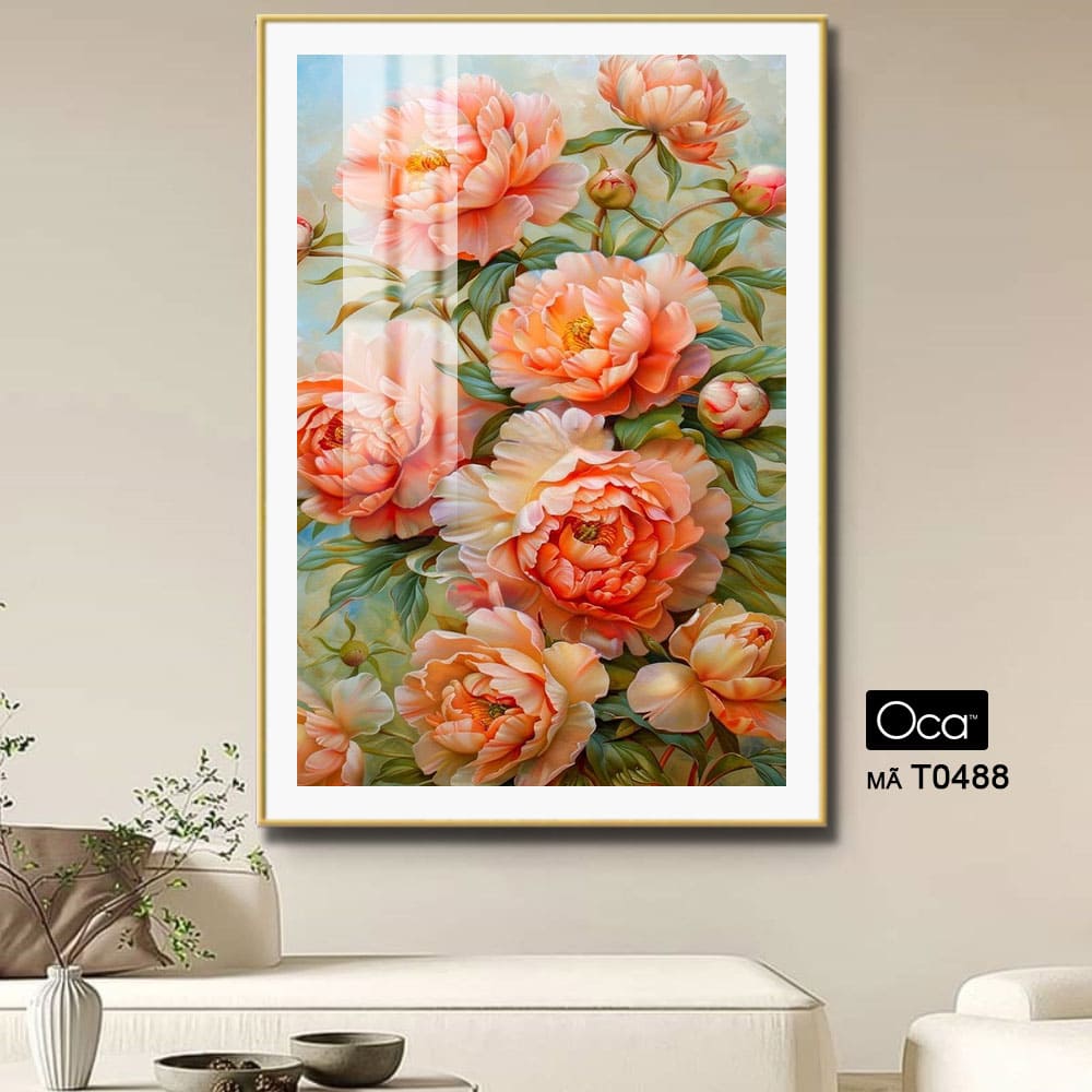 Với nét vẽ mềm mại, bố cục hài hòa và gam màu tinh tế, bức tranh mang phong cách vừa hiện đại vừa cổ điển, phù hợp với nhiều không gian nội thất khác nhau. Mỗi chi tiết đều được thể hiện bằng sự tỉ mỉ và cảm xúc nghệ thuật sâu sắc, khiến người ngắm không chỉ nhìn thấy hoa, mà còn cảm nhận được hơi thở của thiên nhiên và vẻ đẹp thuần khiết trong từng cánh thược dược. Đây là một tác phẩm vừa trang trí, vừa truyền tải năng lượng tích cực và thông điệp về hạnh phúc trọn vẹn.”