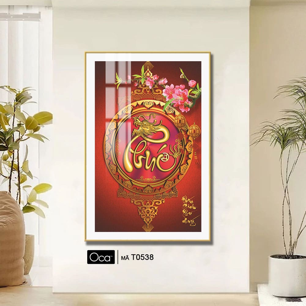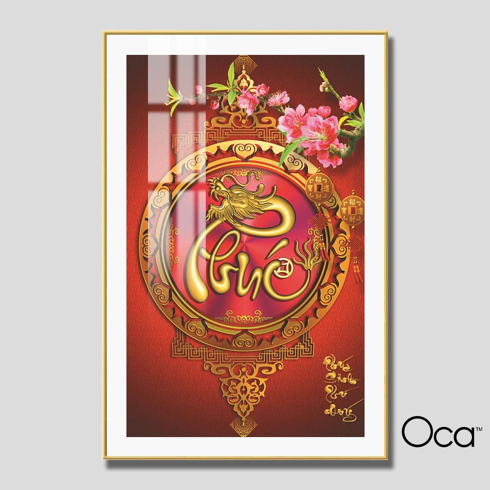 “Bức tranh “Chữ PHÚC sinh Phú Quý” là một tác phẩm nghệ thuật mang đậm văn hóa truyền thống và ý nghĩa phong thủy sâu sắc, biểu trưng cho may mắn, thịnh vượng và hạnh phúc trọn vẹn. Trung tâm bức tranh là chữ “Phúc” được cách điệu tinh xảo, uốn lượn mềm mại nhưng mạnh mẽ, được trang trí bằng hoa văn, lá cành, hoặc hình ảnh vương giả như mẫu đơn, chim công, cá chép, tạo nên một tổng thể hài hòa, sang trọng và tràn đầy năng lượng tích cực.