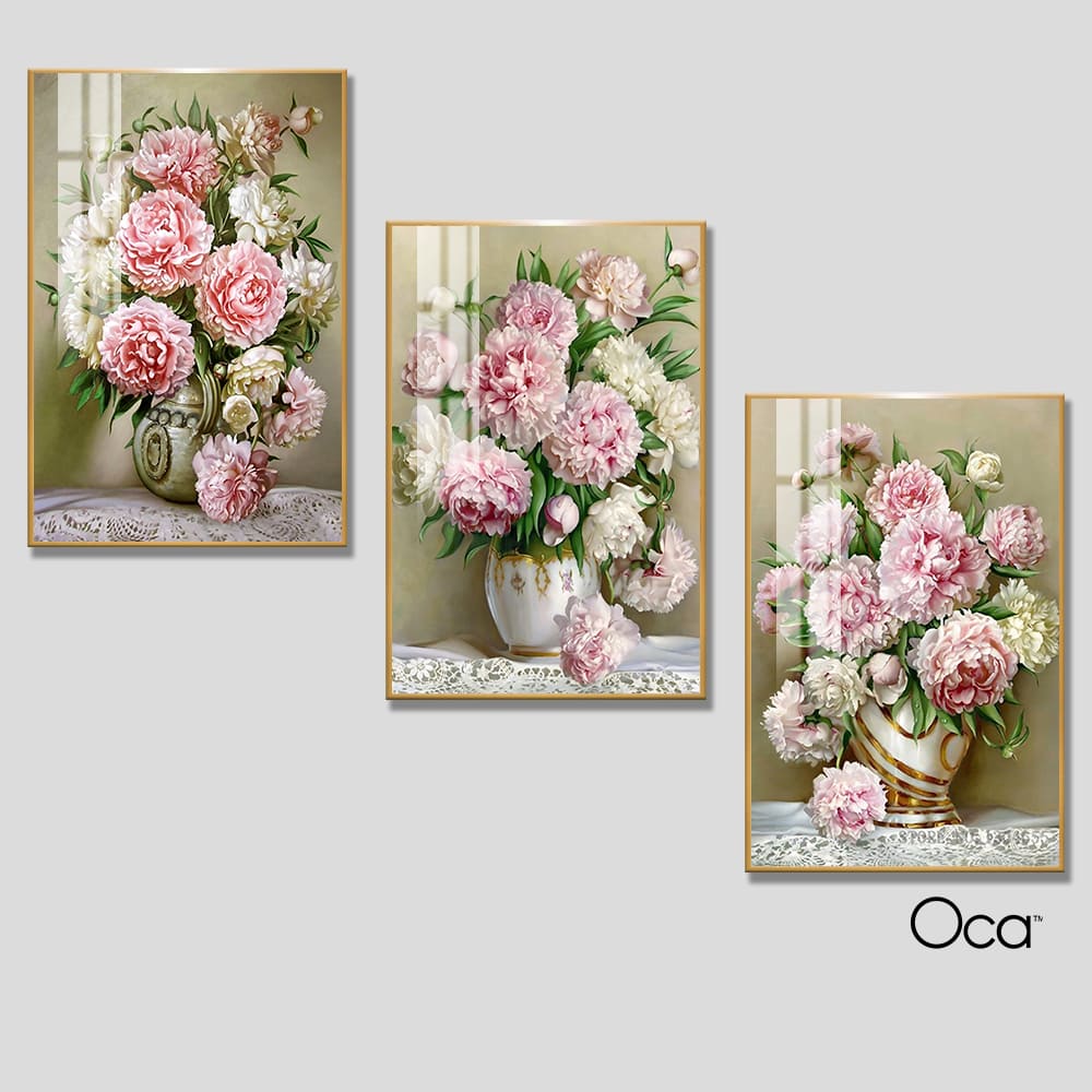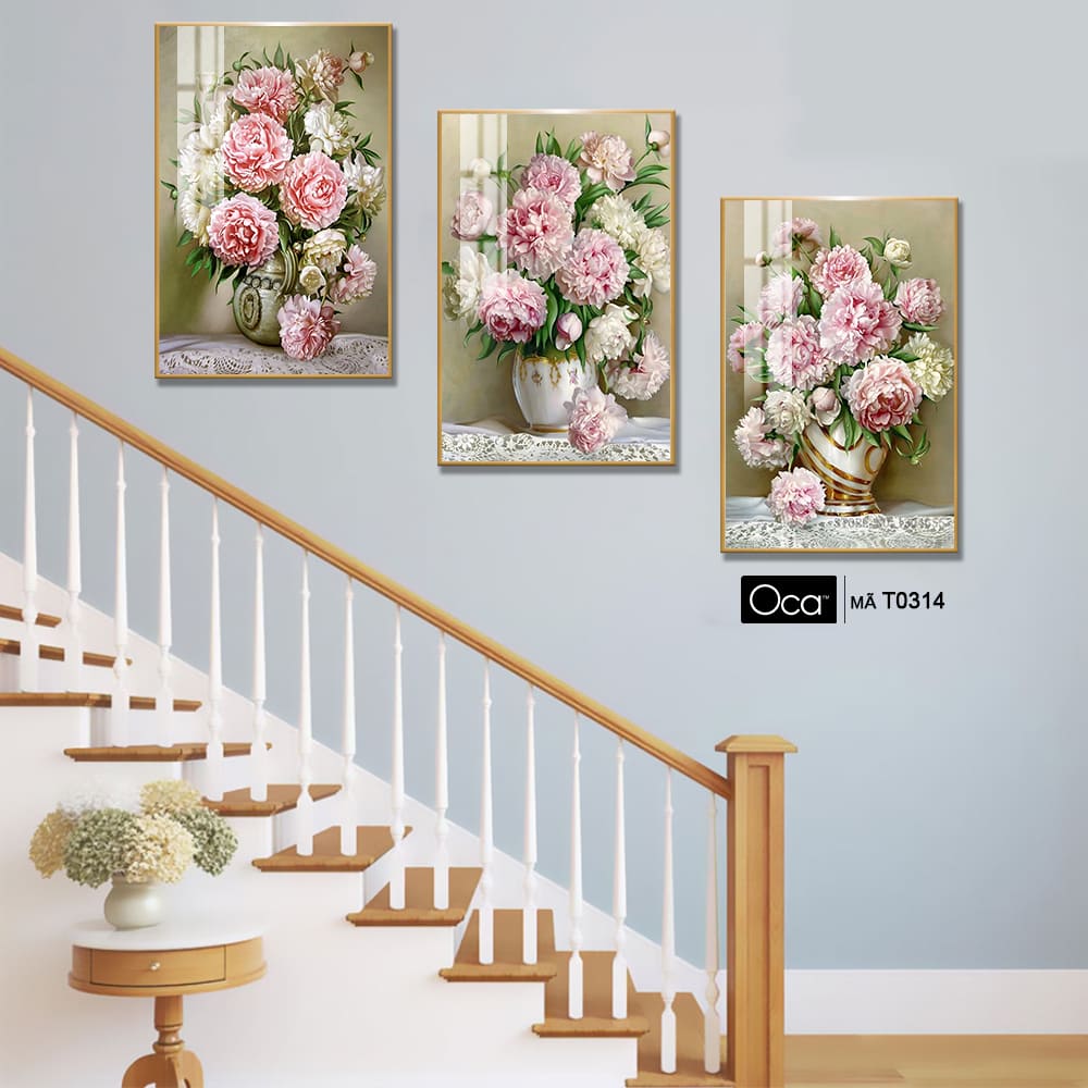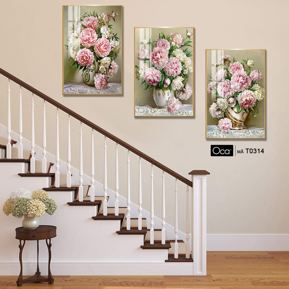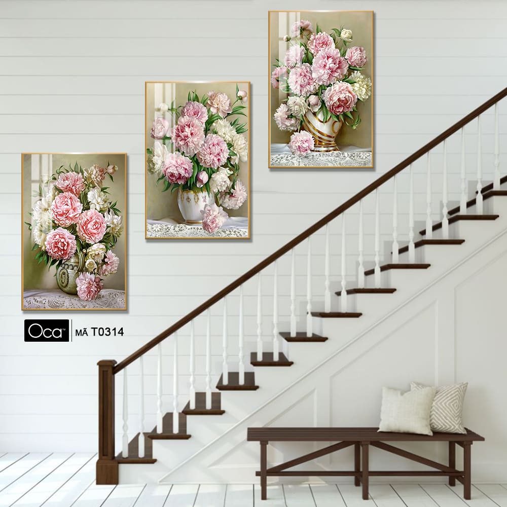 Bình hoa hồng | Bộ 3 tranh treo cầu thang | Mã T0314 | Oca