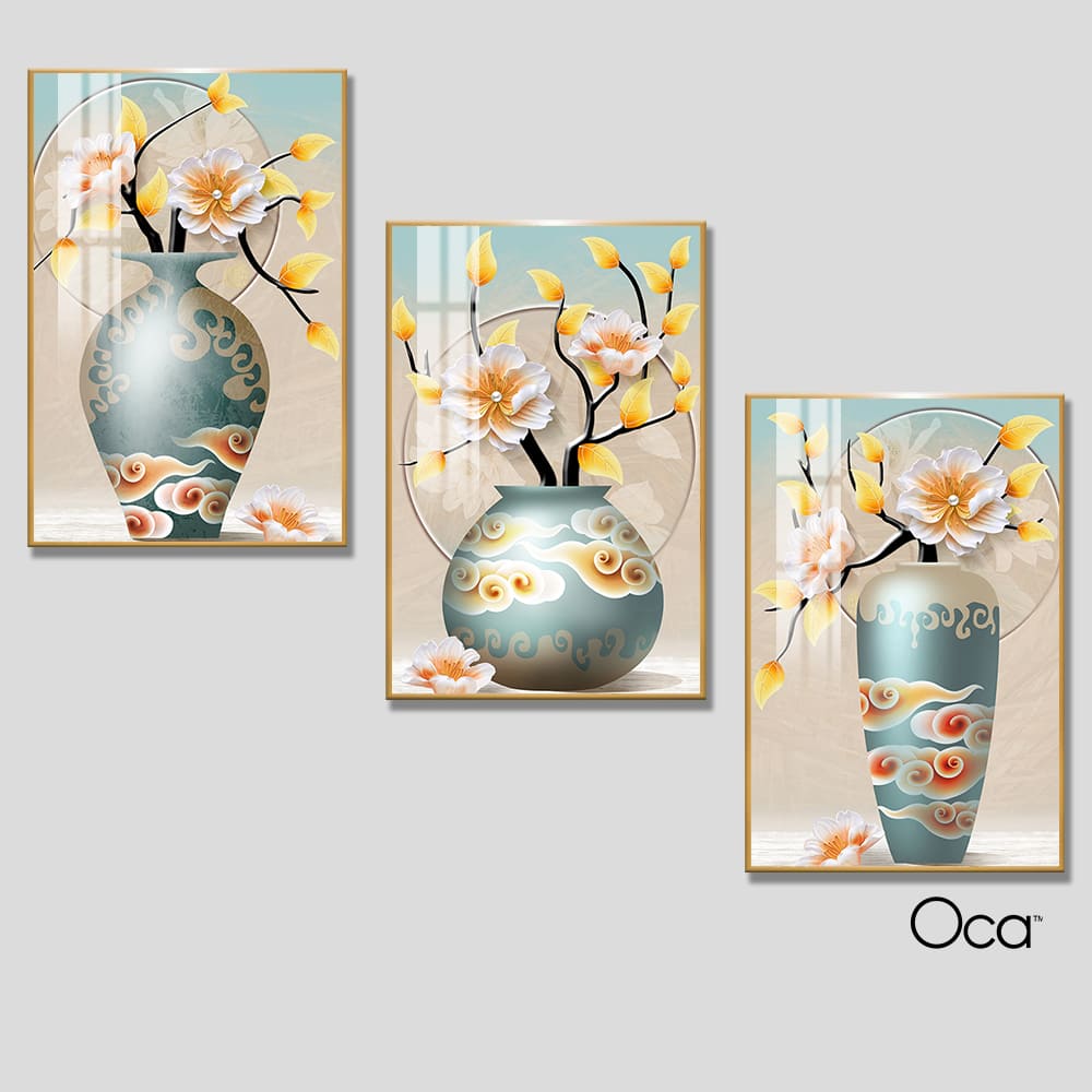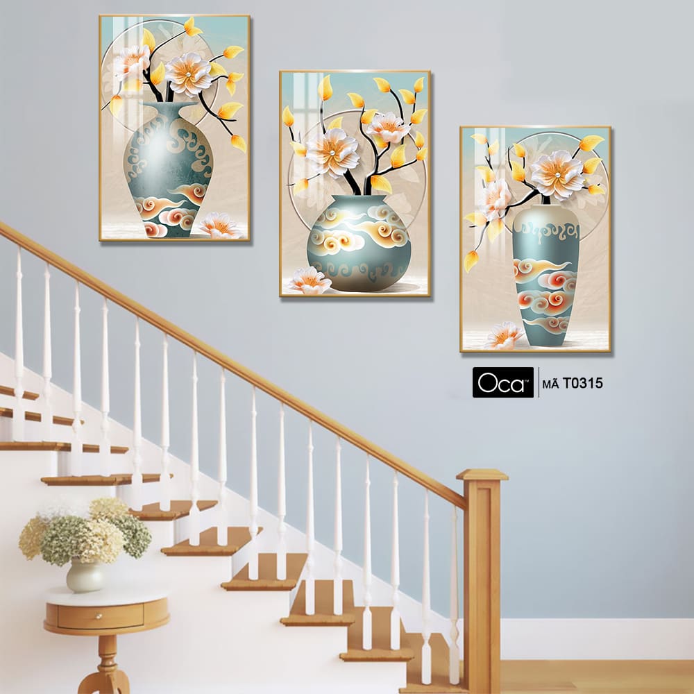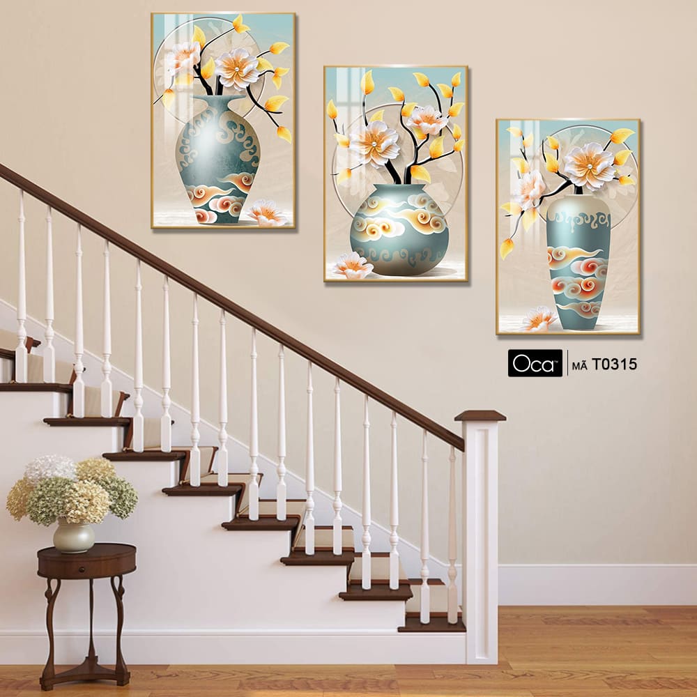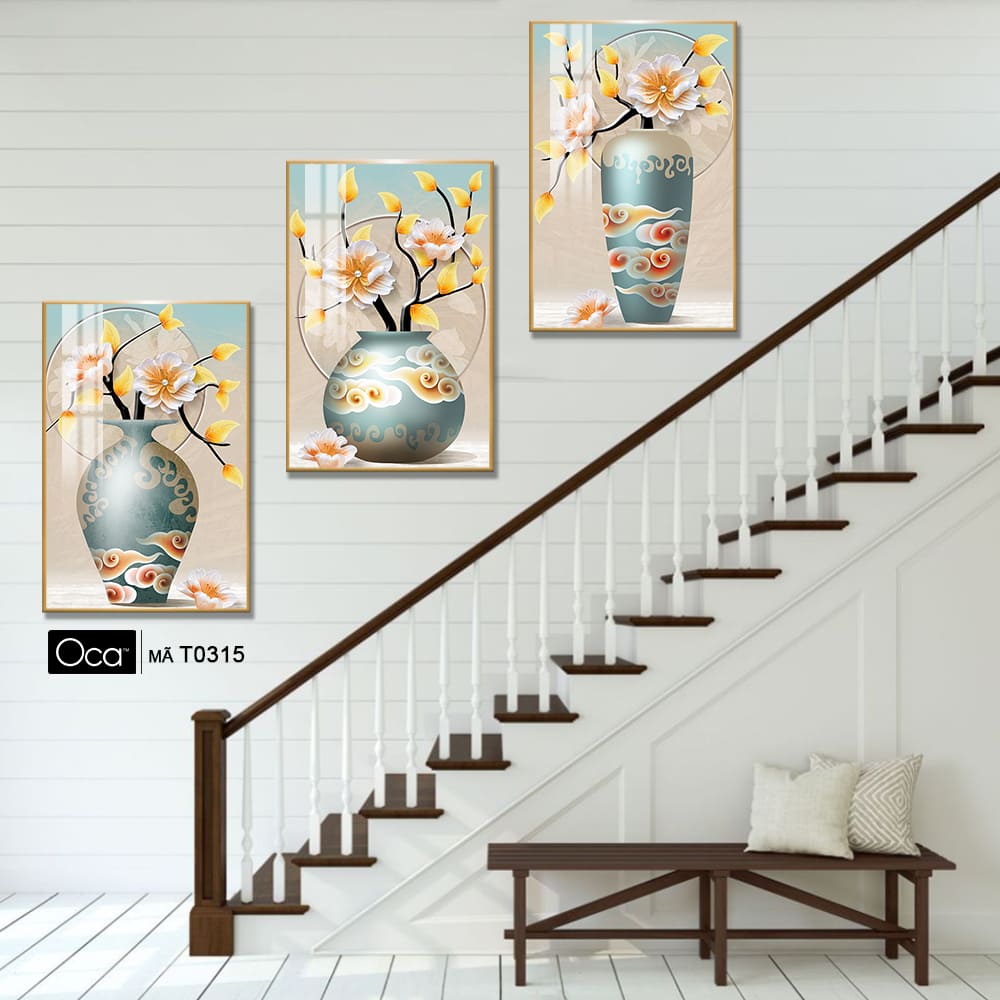 Bình hoa mộc lan | Bộ 3 tranh treo cầu thang | Mã T0315 | Oca