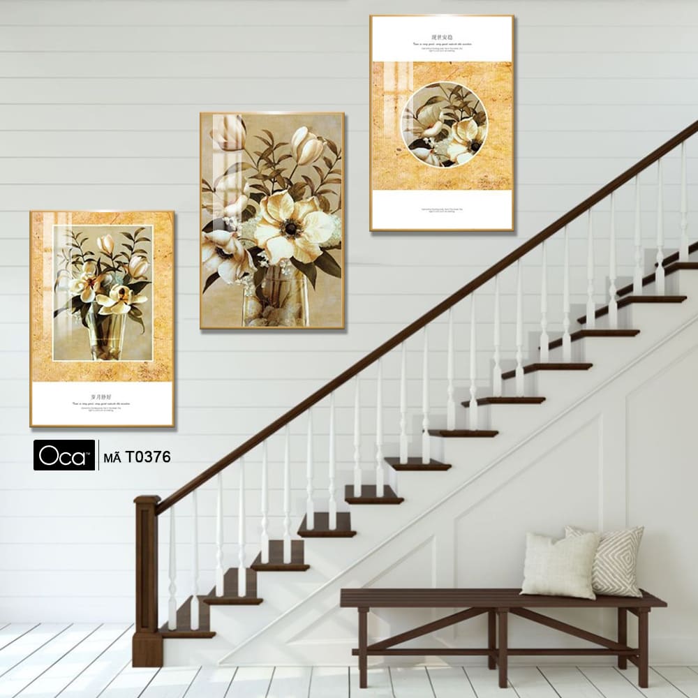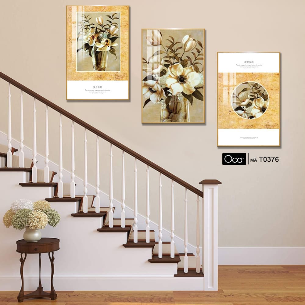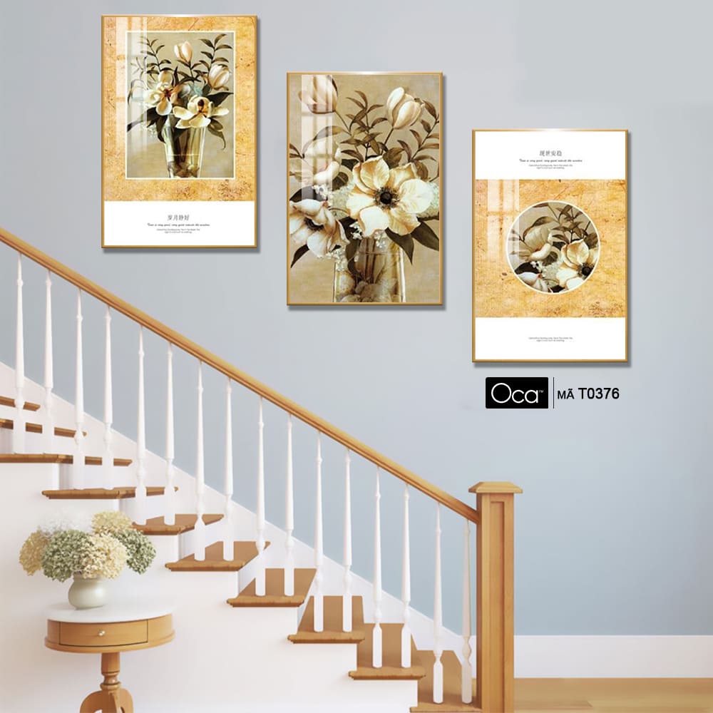 Bình hoa mộc lan | Bộ 3 tranh treo cầu thang | Mã T0376 | Oca