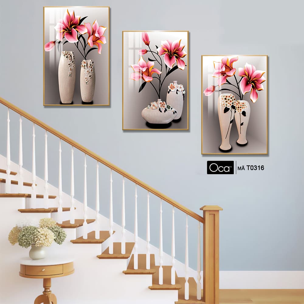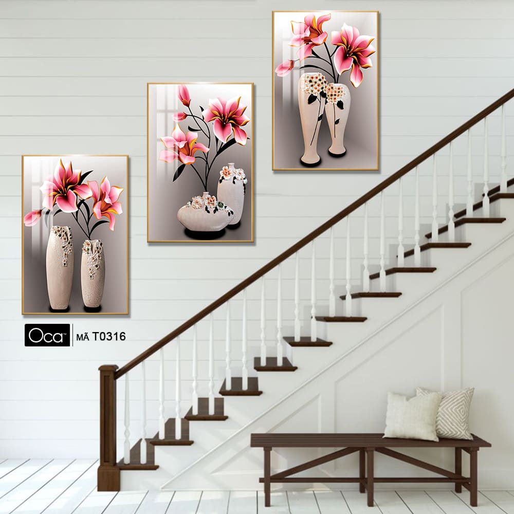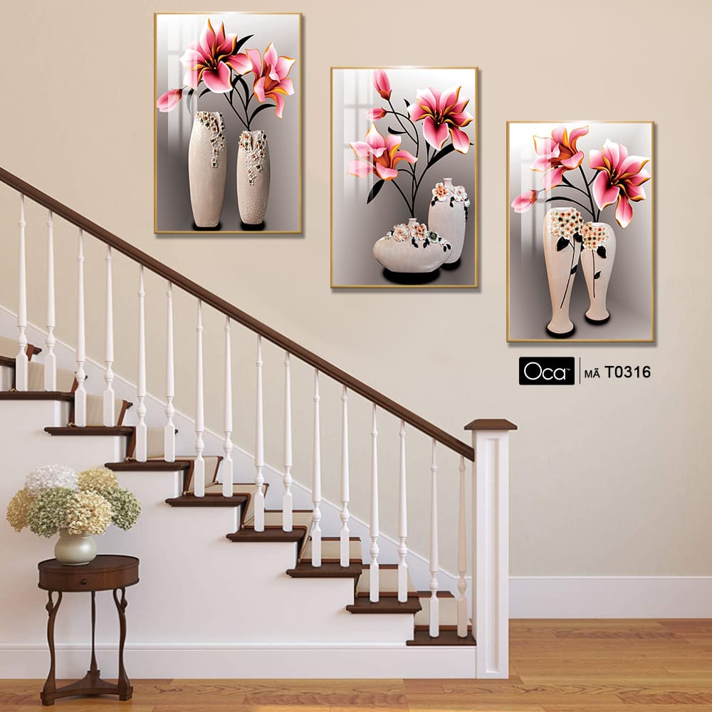 Bình hoa nghệ thuật | Bộ 3 tranh treo cầu thang | Mã T0316 | Oca