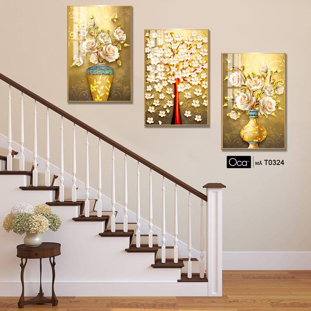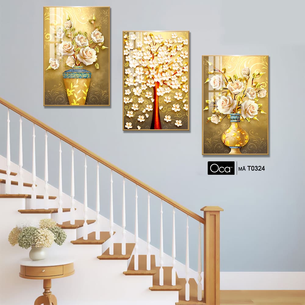 Bộ tranh mai phú quý | Bộ 3 tranh treo cầu thang | Mã T0324 | Oca
