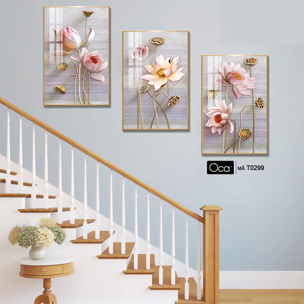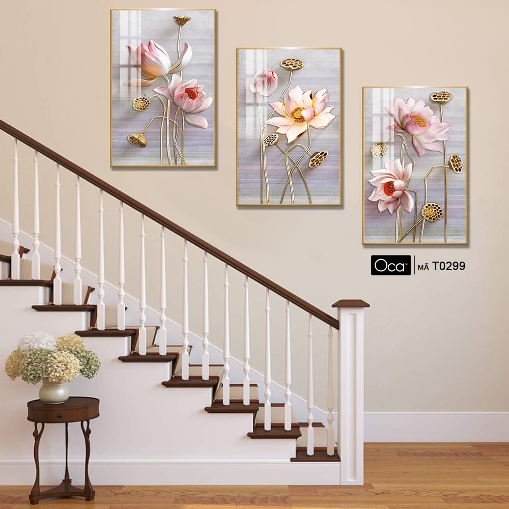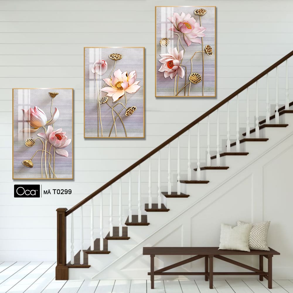 Cánh sen hồng | Bộ 3 tranh treo cầu thang | Mã T0299 | Oca