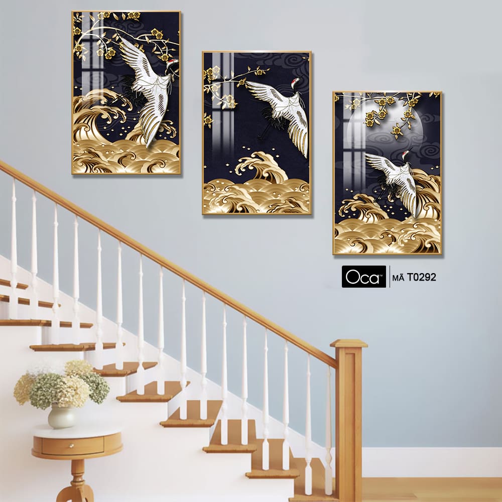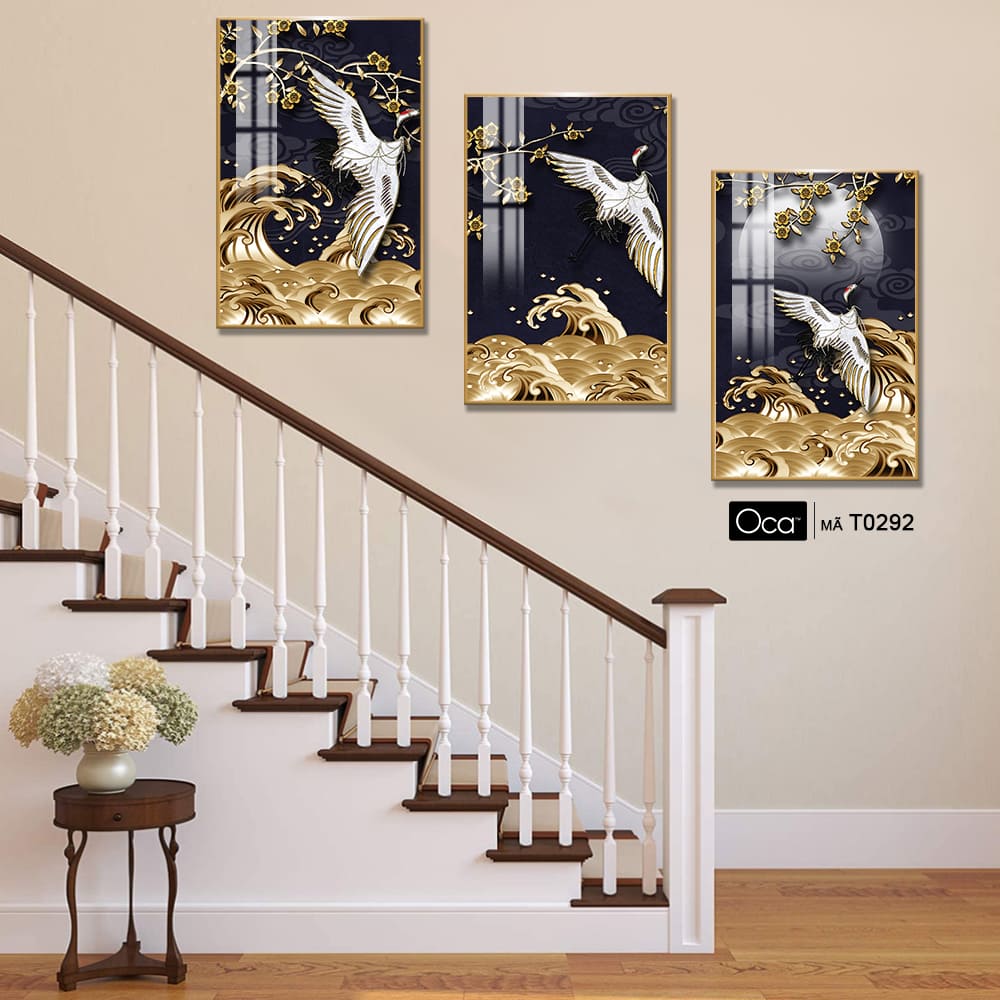 Chim hạc cất cánh | Bộ 3 tranh treo cầu thang | Mã T0292 | Oca