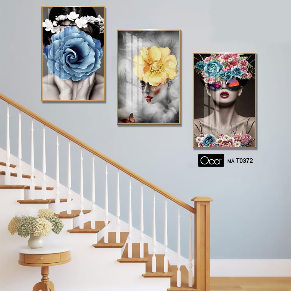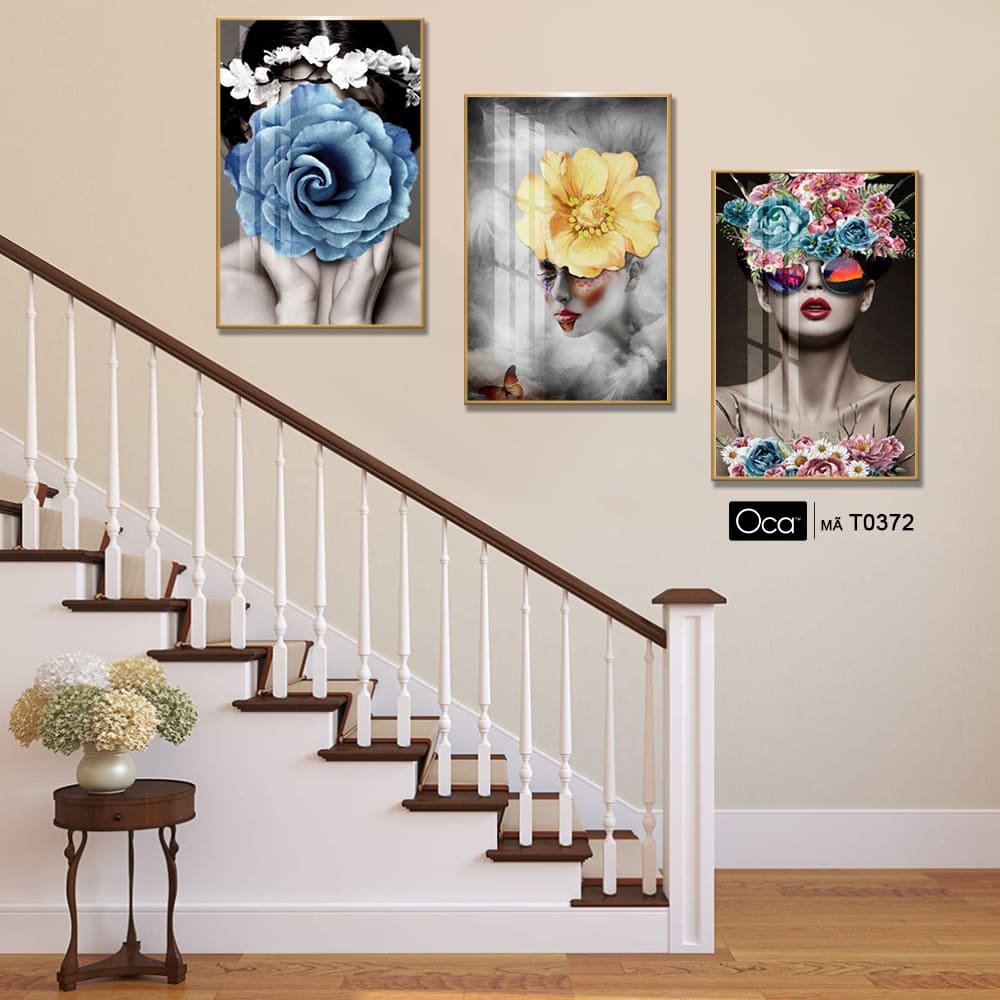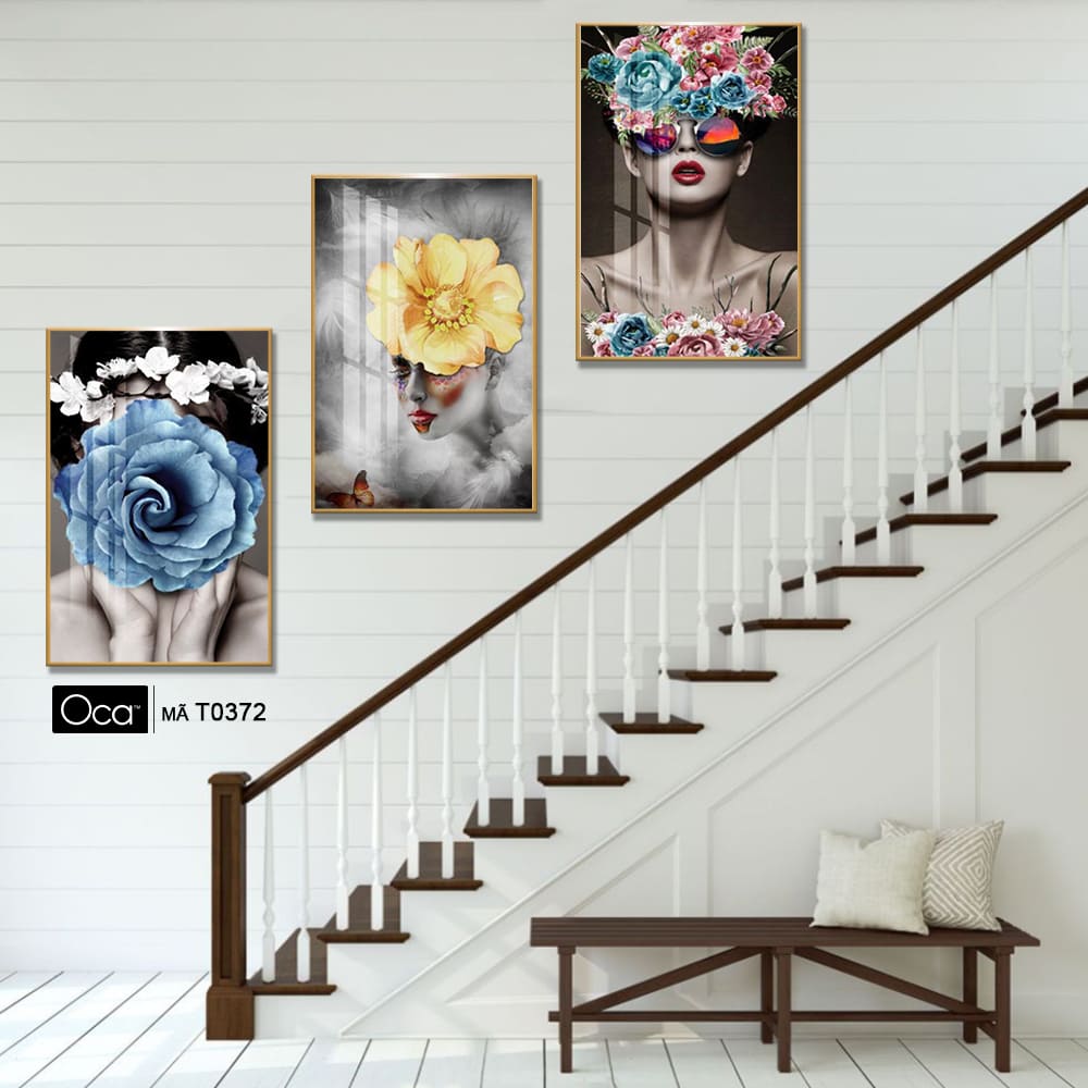 Cô gái nghệ thuật | Bộ 3 tranh treo cầu thang | Mã T0372 | Oca