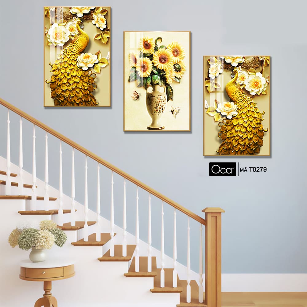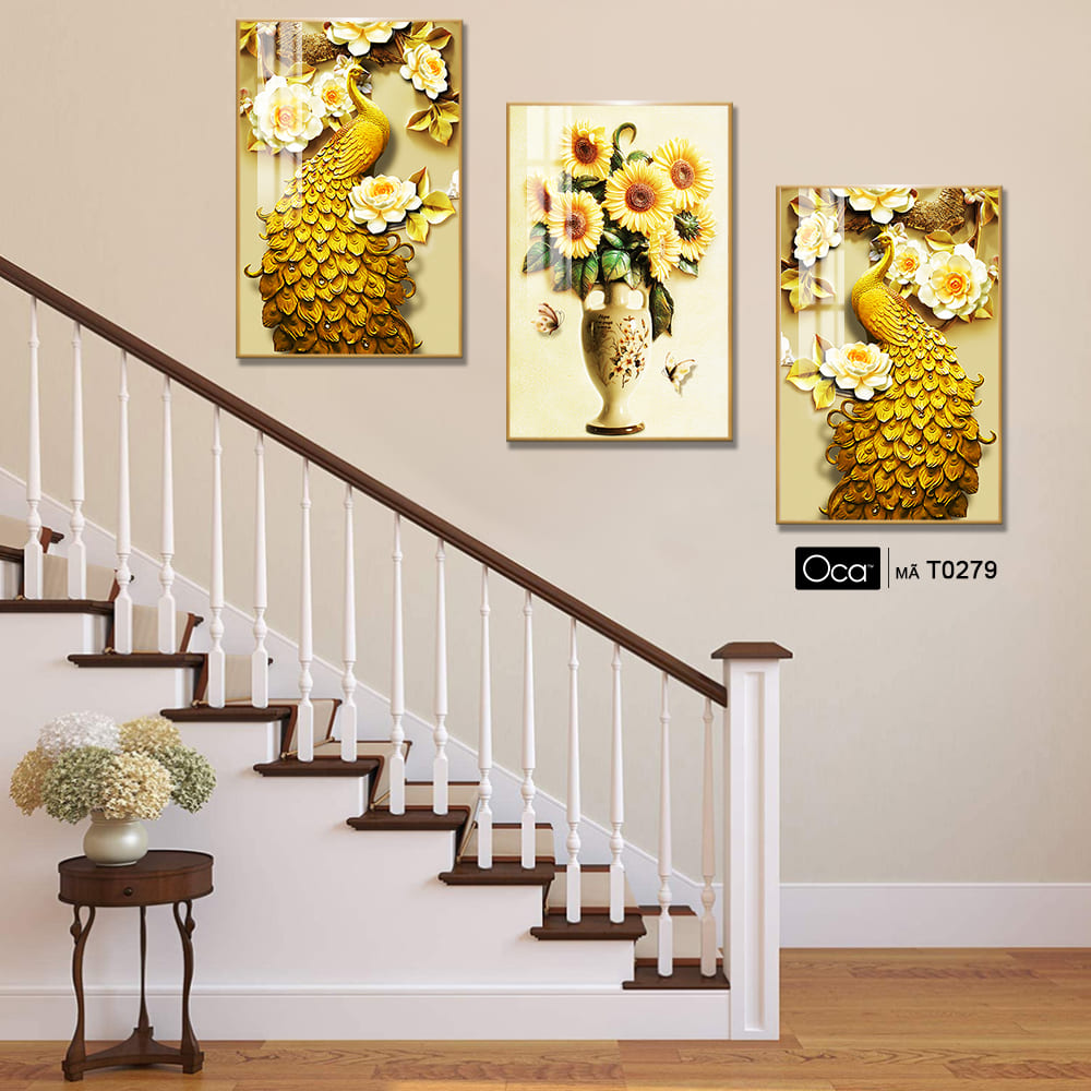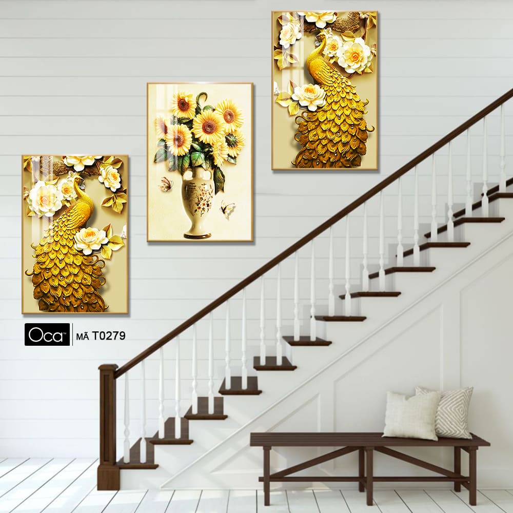 Đôi công uyên ương | Bộ 3 tranh treo cầu thang | Mã T0279 | Oca