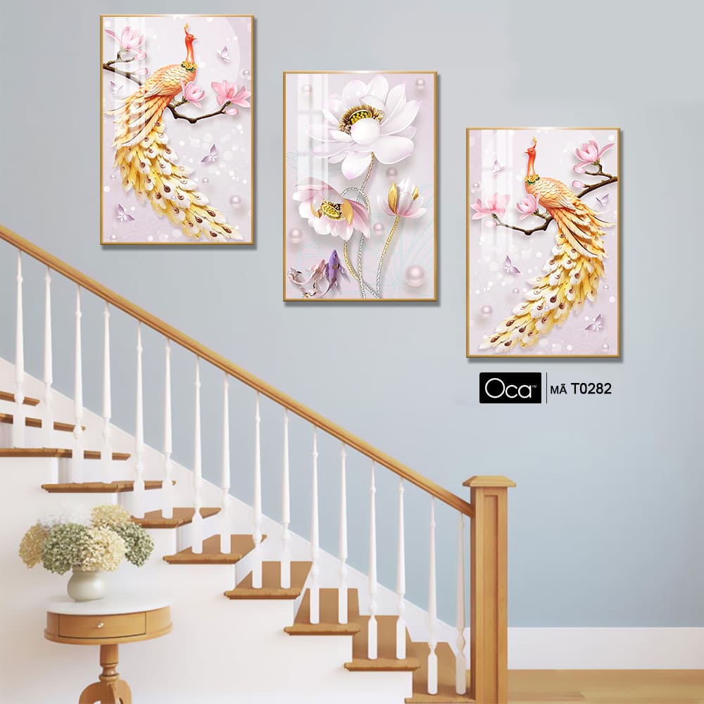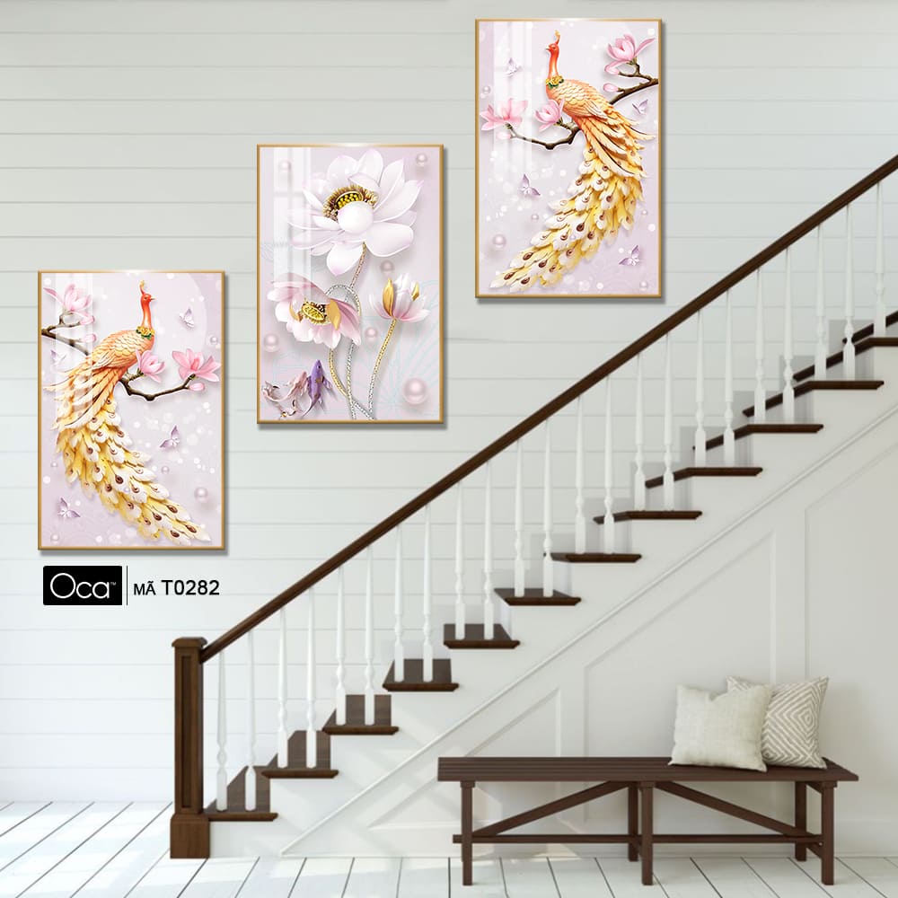 Đôi công uyên ương | Bộ 3 tranh treo cầu thang | Mã T0282 | Oca