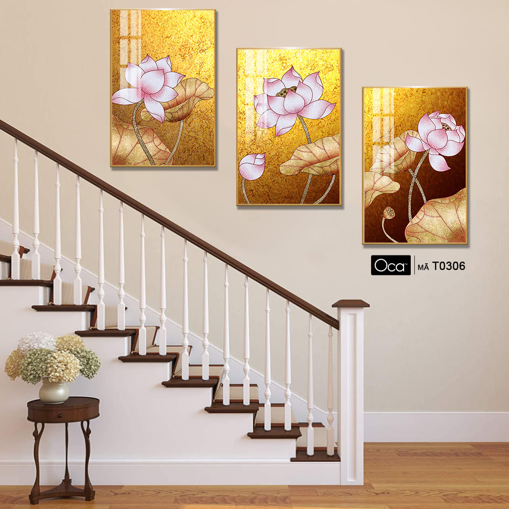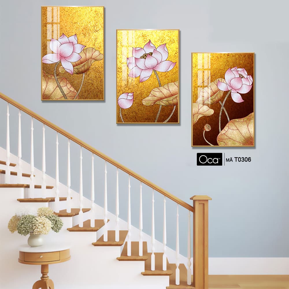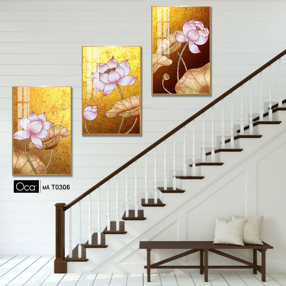 Hoa sen nghệ thuật | Bộ 3 tranh treo cầu thang | Mã T0306 | Oca