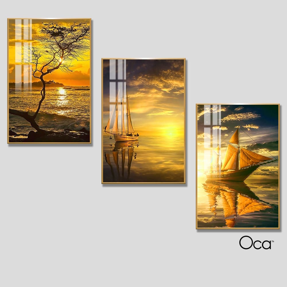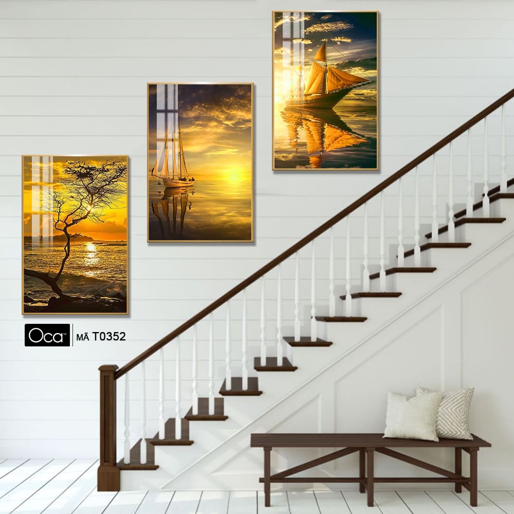 Hoàng hôn trên biển | Bộ 3 tranh treo cầu thang | Mã T0352 | Oca