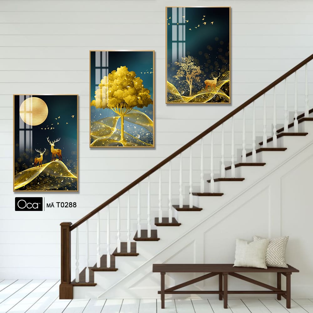 Hươu trong đêm trăng | Bộ 3 tranh treo cầu thang | Mã T0288 | Oca