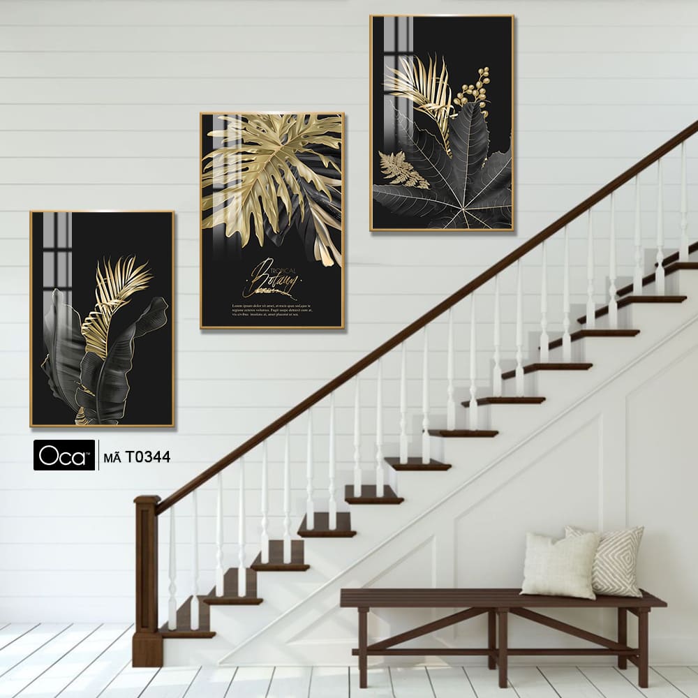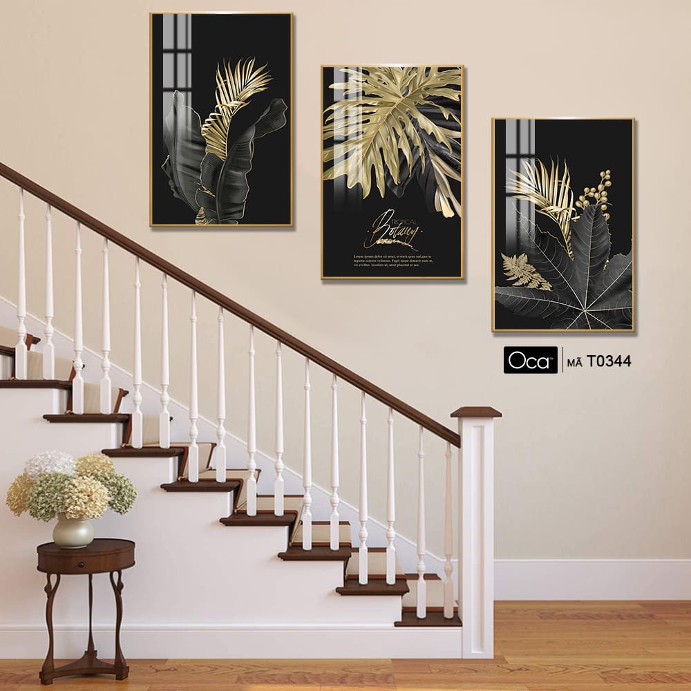 Lá nghệ thuật | Bộ 3 tranh treo cầu thang | Mã T0344 | Oca