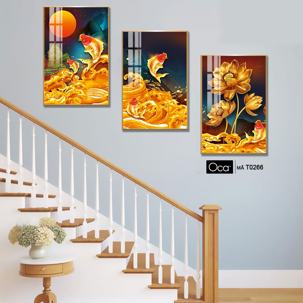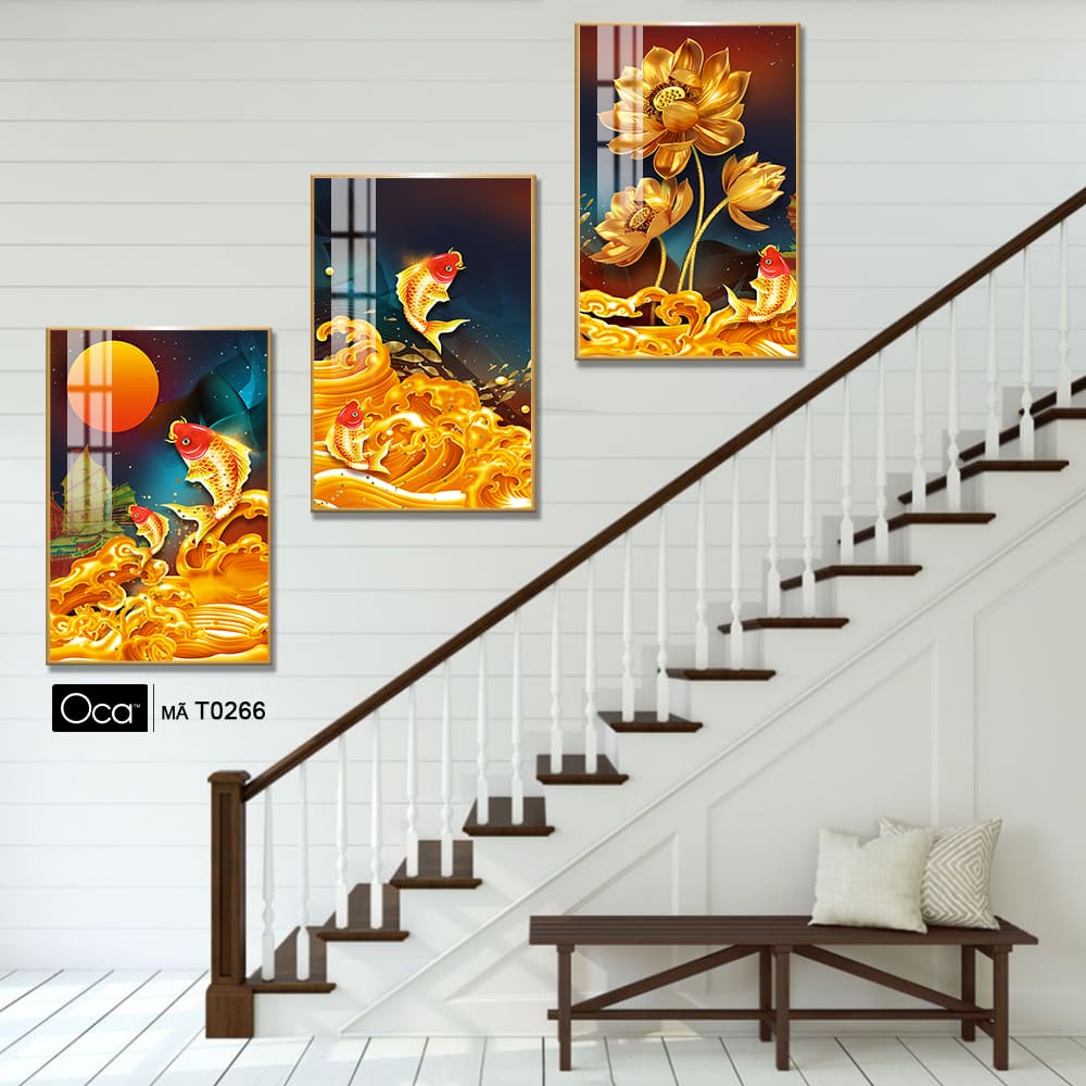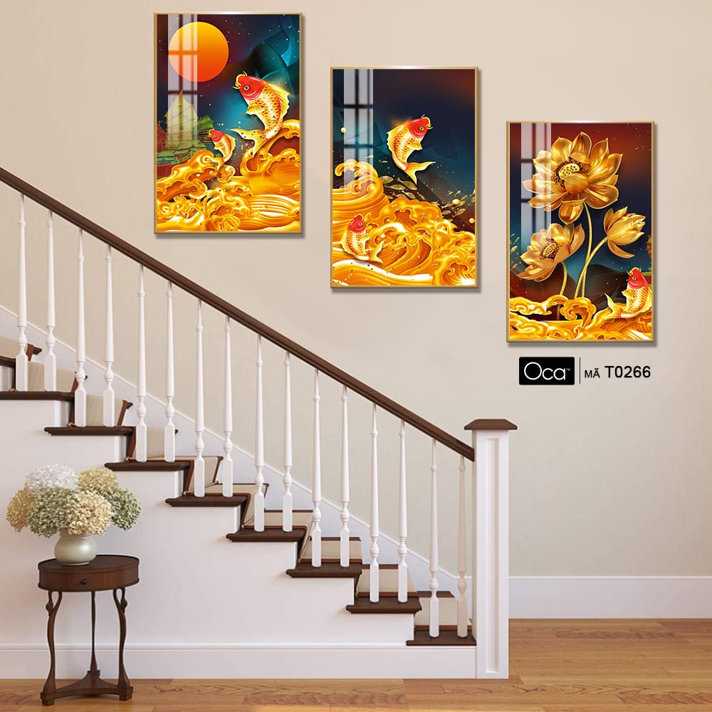 Lý ngư vọng nguyệt | Bộ 3 tranh treo cầu thang | Mã T0266| Oca