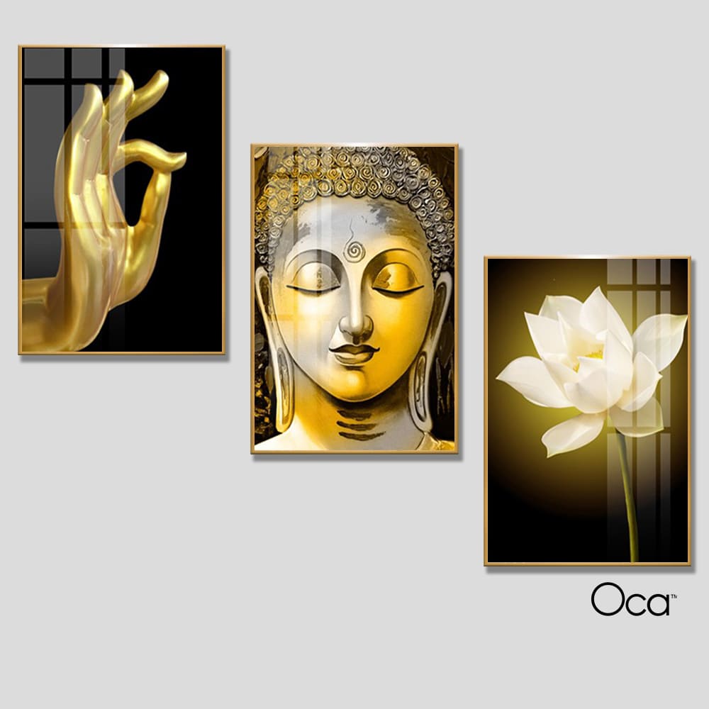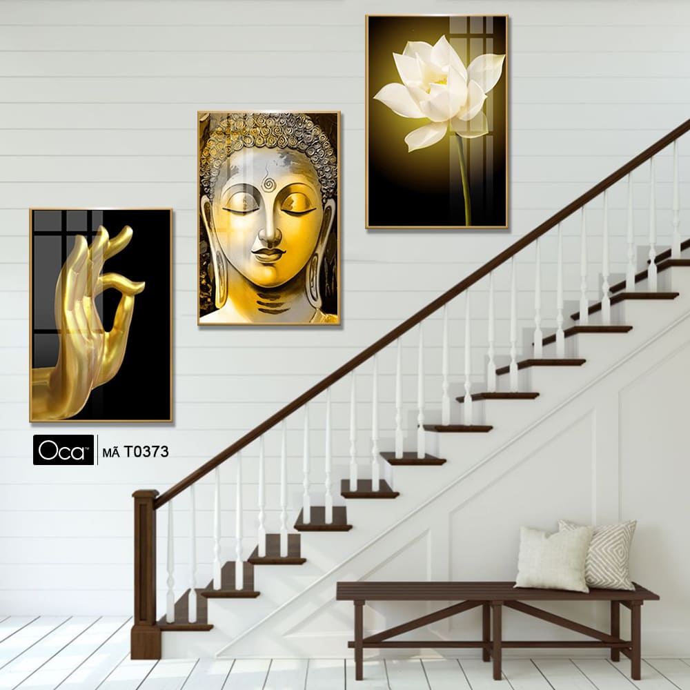 Phật pháp hoa sen | Bộ 3 tranh treo cầu thang | Mã T0373 | Oca
