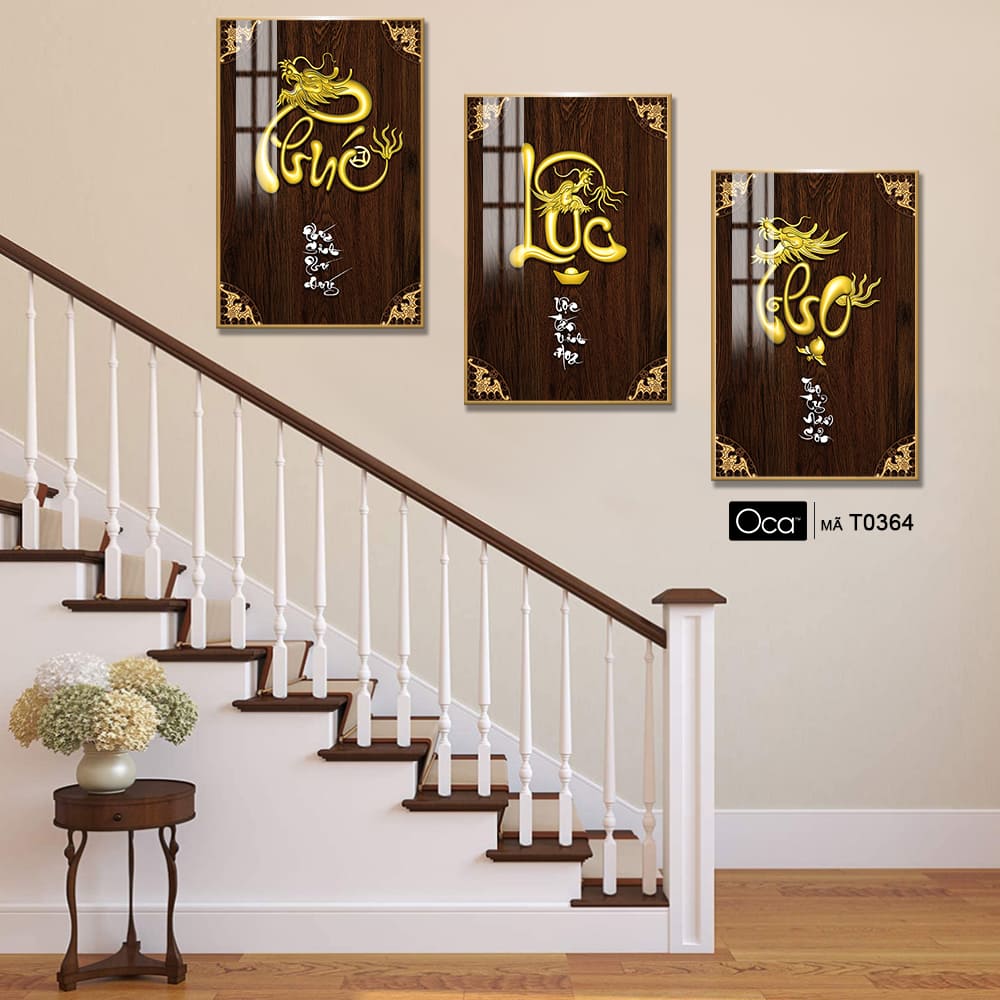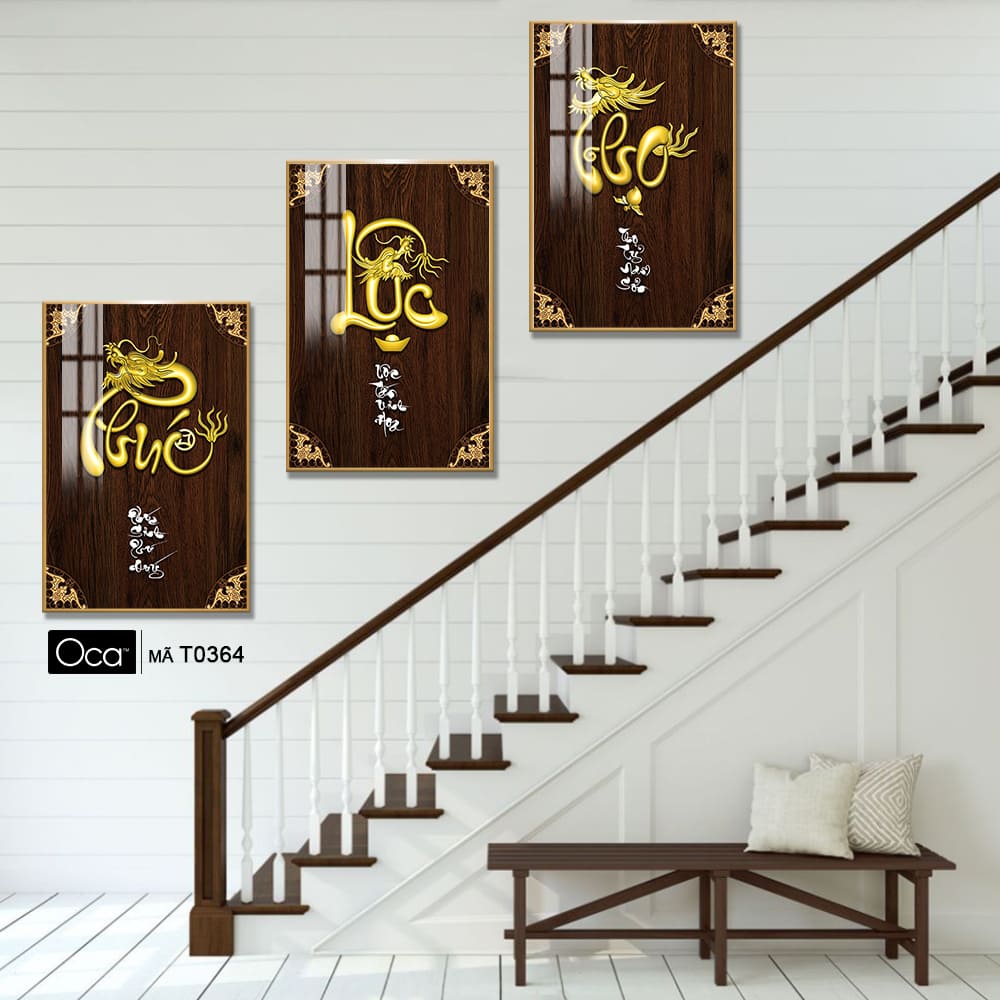 Phúc – Lộc – Thọ | Bộ 3 tranh treo cầu thang | Mã T0364 | Oca