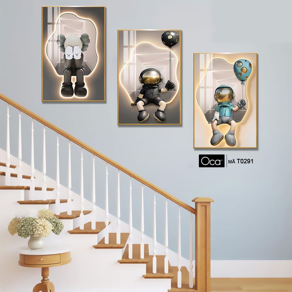 Tranh Bearbrick | Bộ 3 tranh treo cầu thang | Mã T0291 | Oca