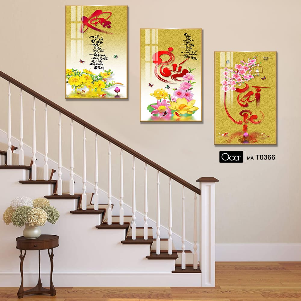 Xuân Phúc Tài Lộc | Bộ 3 tranh treo cầu thang | Mã T0366 | Oca