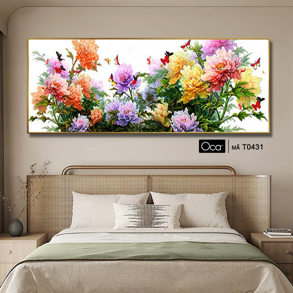 Khóm hoa thược dược | Tranh treo phòng ngủ | Mã T0431 | Oca